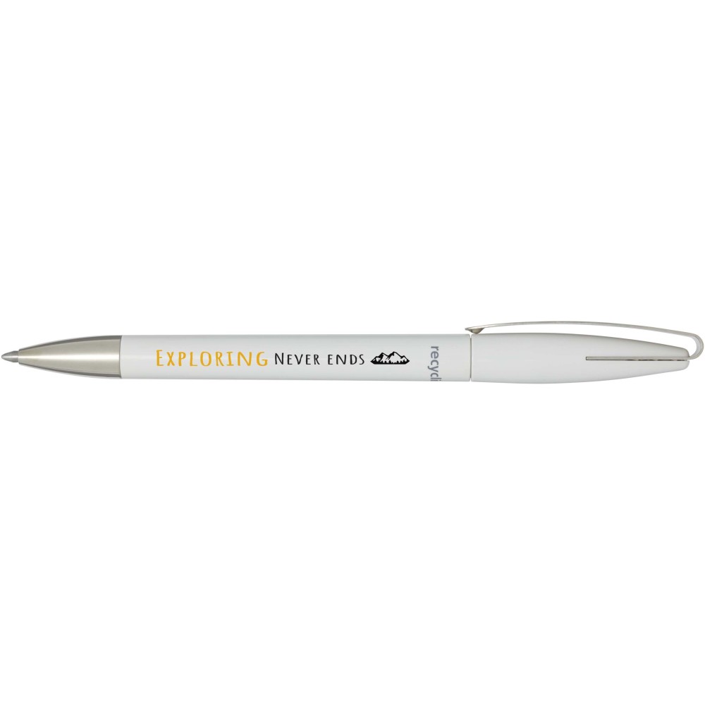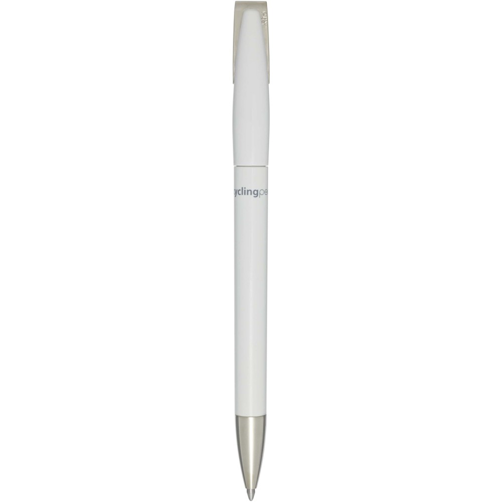 Golyóstoll, amelynek teste és klipsze újrahasznosított műanyagból, hegye pedig rozsdamentes acélból készült. Kék tollbetéttel. Íráshossz: 3000 méter. Hegyméret: 1,00 mm. Németországban készült. Emblémázás: Tamponnyomás