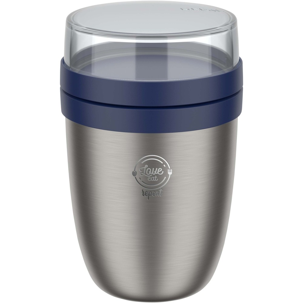 Két különálló rekesszel ellátott, hőszigetelt ételdoboz, amelyben a különböző összetevők elkülöníthetők egymástól. Mindkét tartály külön fedéllel rendelkezik, így az összetevők nem keverednek össze. Az ételt 6-8 órán át melegen, 12 órán át hidegen tartja. A felső átlátszó tartály űrtartalma 200 ml. Az alsó tartály űrtartalma 500 ml. Tartós anyagból készült, a doboz külseje hűvös és száraz marad. Kézzel való mosogatást javasolunk. A fedél műanyag részei mosogatógépben moshatók. Emblémázás: Gravírozás, Tamponnyomás