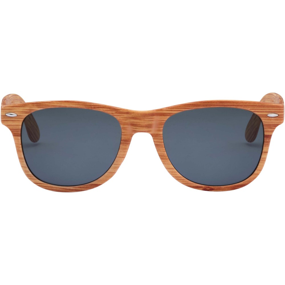 Retro stílusú, fa hatású napszemüveg. Ez a napszemüveg UV 400 lencsékkel rendelkezik, így tökéletes választás a ragyogó napfény elleni védelemhez. Megfelel az EU EN12312-1 biztonsági szabványnak. Emblémázás: Tamponnyomás