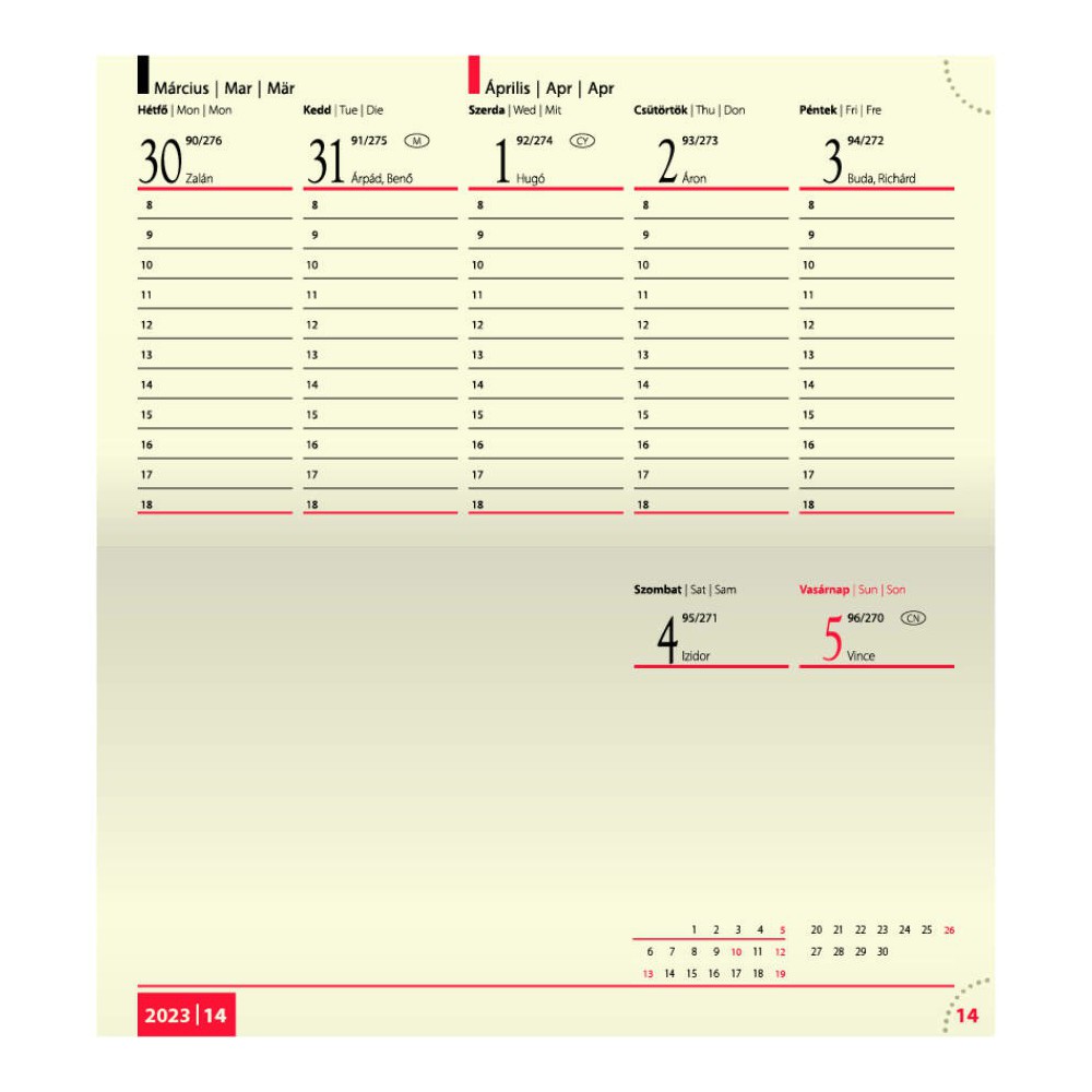 Bolero P Zsebnaptár - fekvő