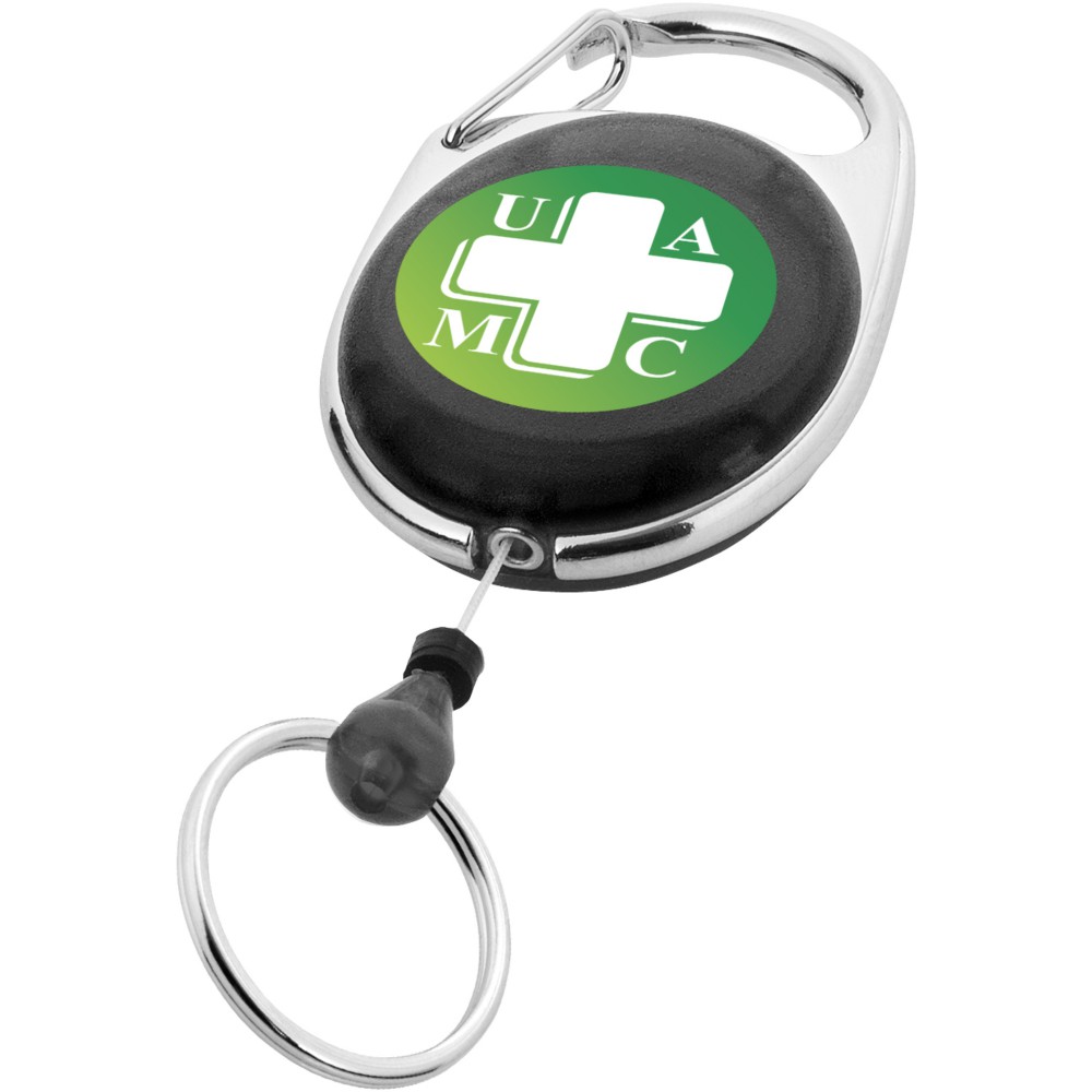 A Gerlos görgős klip, badge-tartó, vagy síbérlettartó minden irodába, vásárra, konferenciára vagy sípályára tökéletes. A görgős kapocs karabinerrel rendelkezik, erős szerkezetének és a 60 cm-es zsinórnak köszönhetően a látogató könnyedén rögzítheti a kitűzőt. A Gerlos kulcstartó erős ABS műanyagból készült, és több színben is elérhető. Emblémázás: Tamponnyomás, UV nyomtatás