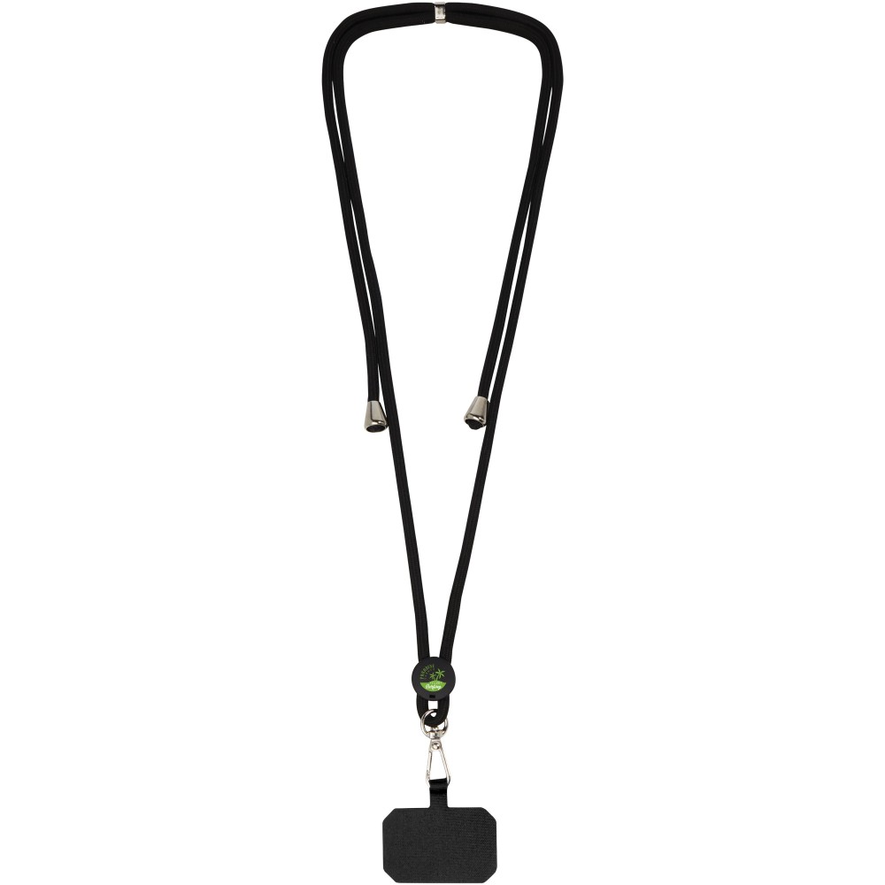 Univerzális, kiváló minőségű nyakpánt mobiltelefon-tokokhoz, minden tokkal ellátott okostelefonhoz alkalmas. A zsinór maximális hossza 160 cm, az állítható csattal pedig a kívánt hosszra állítható. A zsinór könnyen kioldható a fém kampóval, így a pánt a telefontok belsejében marad, hogy újra könnyen rögzíthető legyen. Emblémázás: Tamponnyomás