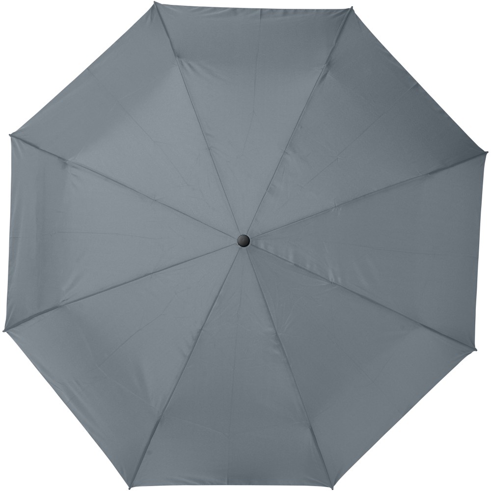 Összecsukható 21 -es esernyő. Erős fém váz, üvegszálas szerkezet. Fa nyele és az újrahasznosított RPET alapanyag miatt jó választás azok számára, akiknek fontos a fenntartható szemlélet. Emblémázás: Szitanyomás