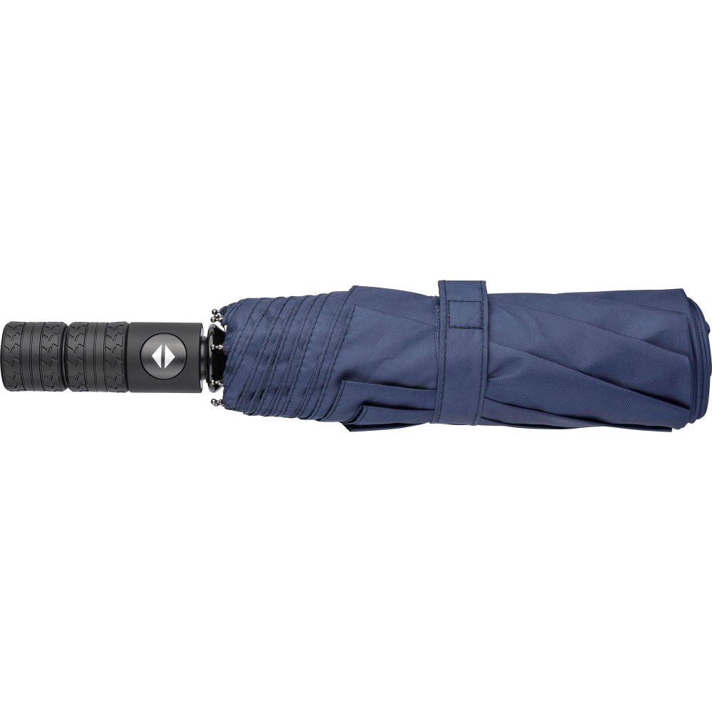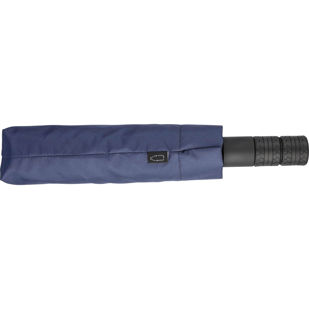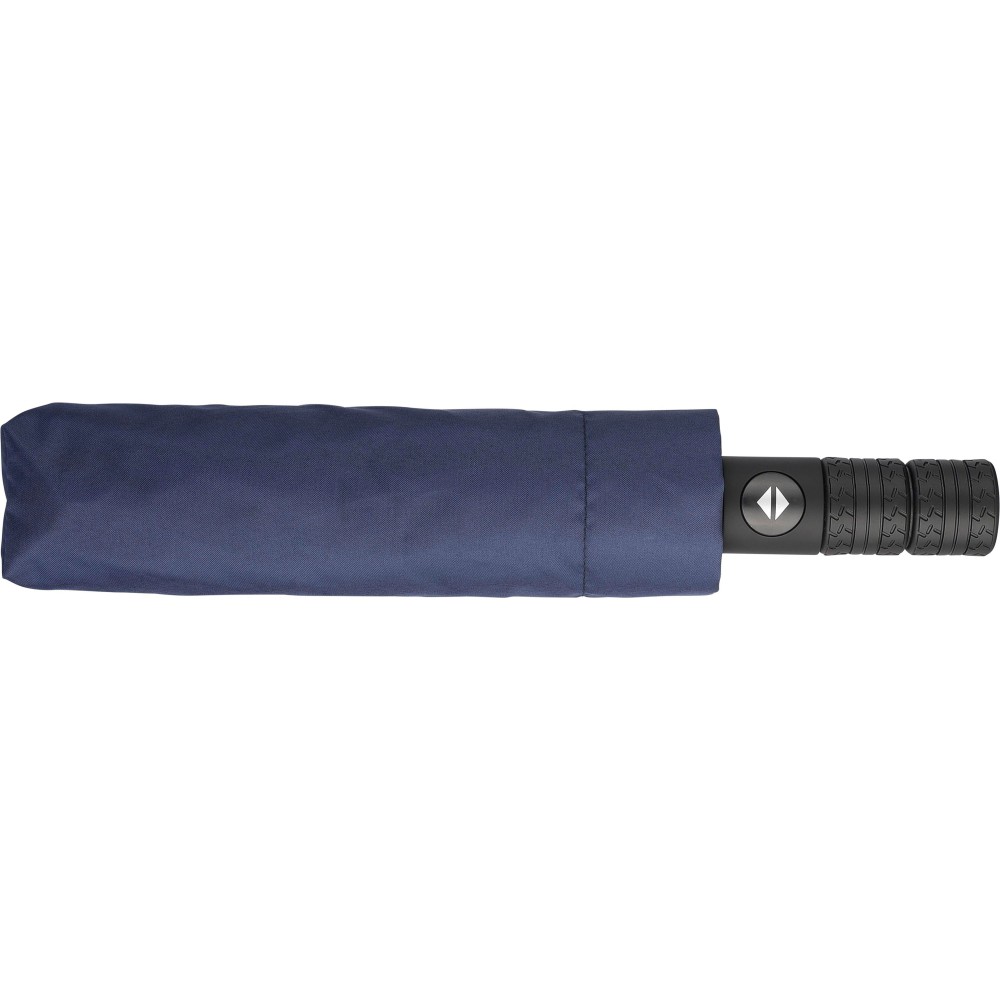 Automata nyitású és zárású, összecsukható esernyő 8 panellel, tokkal. Nyele gumis mintázatú, az autók abroncsára emlékeztet. Vászna RPET pongee anyag. Mérete: 21". Emblémázás: Szitanyomás