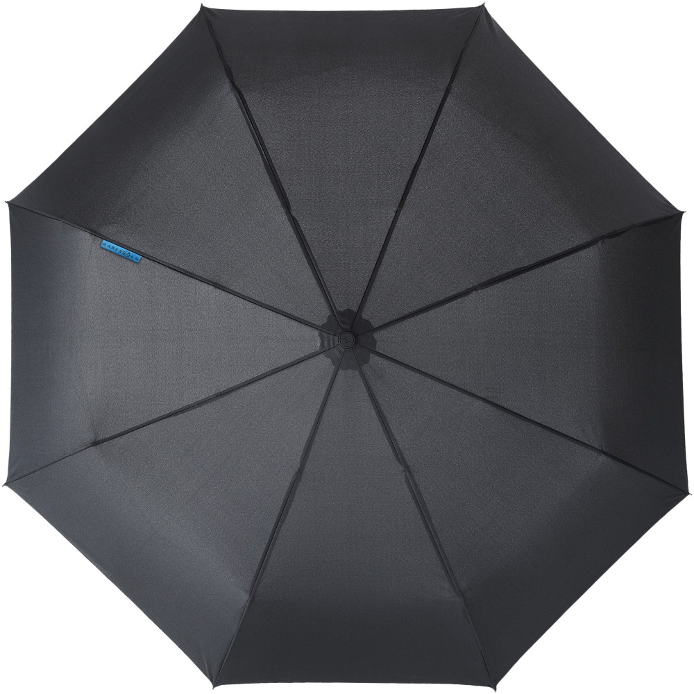 Exkluzív kivitelű 3 részes automata esernyő. Fekete fém nyél, üvegszálas bordák és gumival borított műanyag markolat. Az ernyőhöz illő tasakkal. Összecsukva mindössze 31 cm hosszú. Emblémázás: Szitanyomás