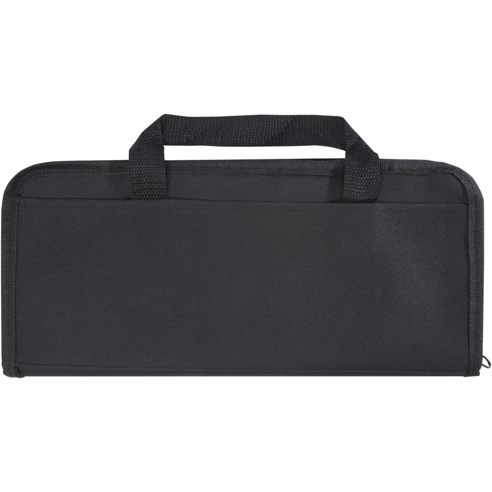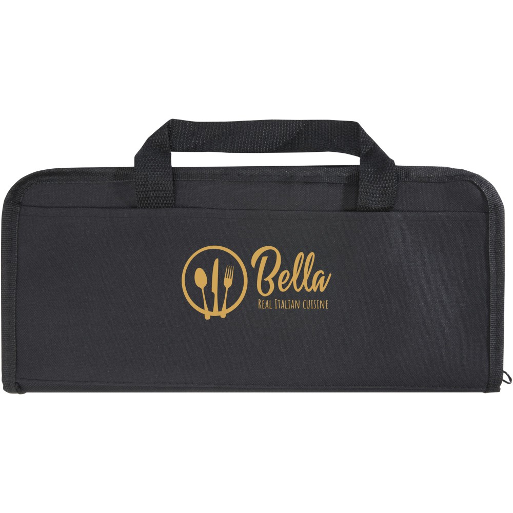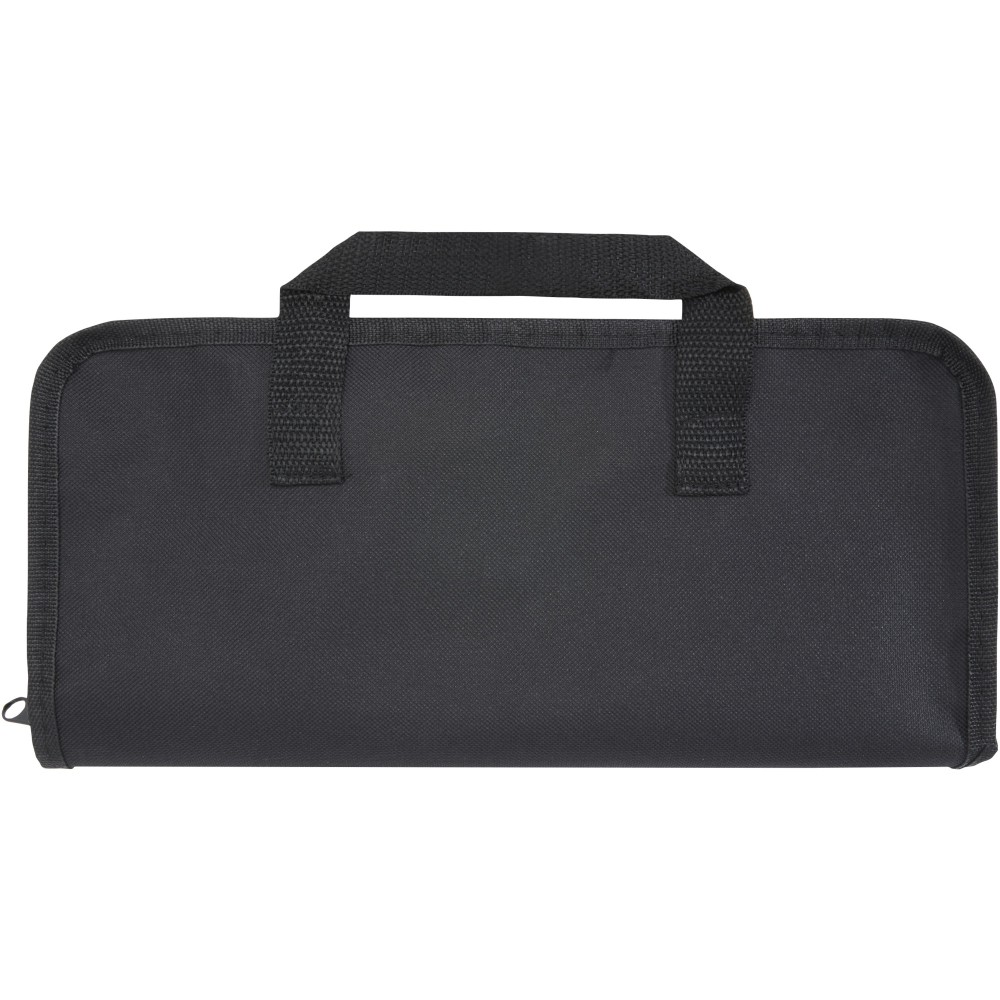 5 részes BBQ készlet lapáttal (29 x 7 cm), villával (29 x 1,7 cm), késsel (29 x 2,4 cm), vágódeszkával (19 x 13 x 1,1 cm) és kesztyűvel (25 x 16 cm). Emblémázás: Gravírozás, Tamponnyomás