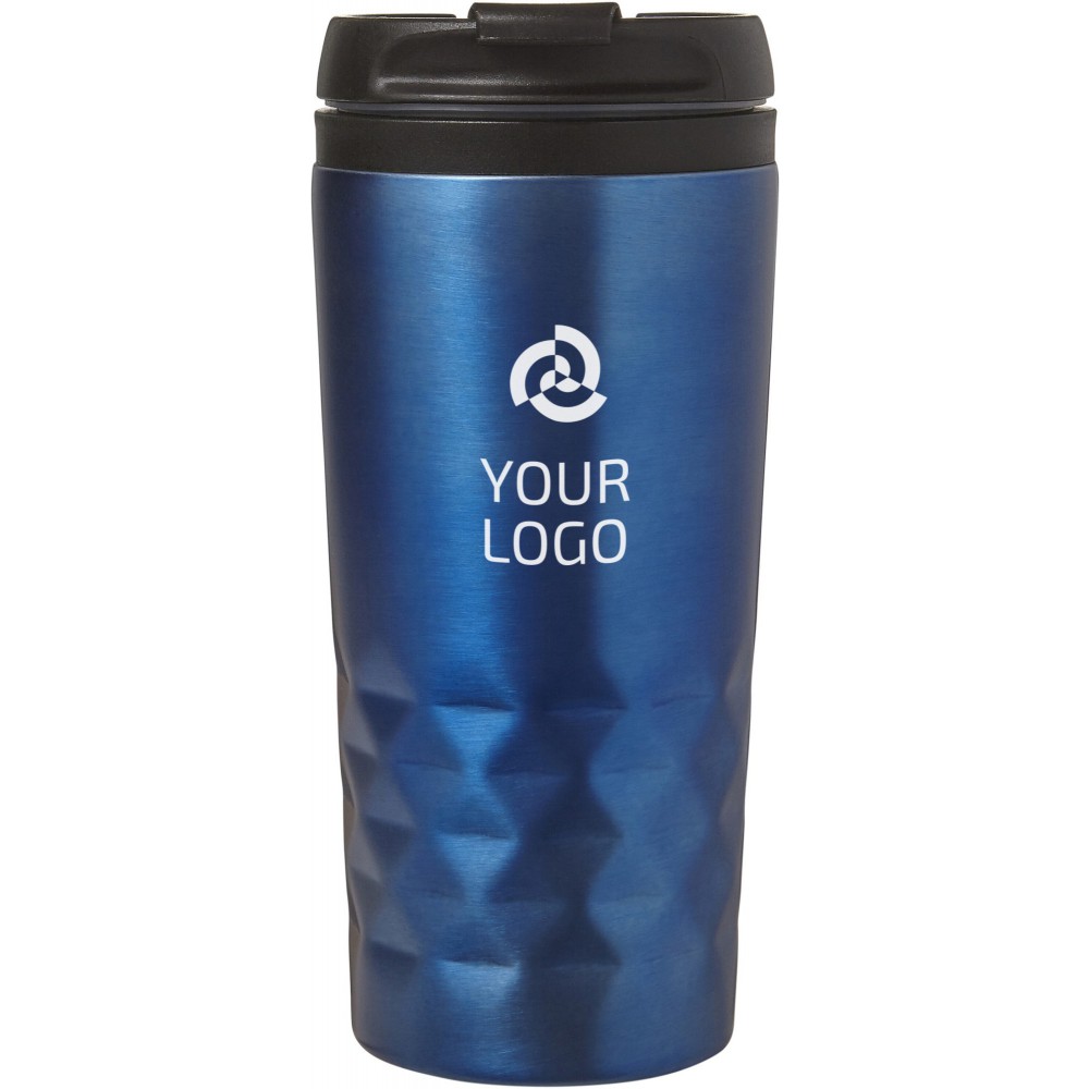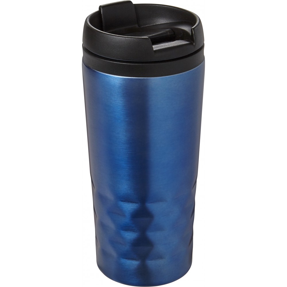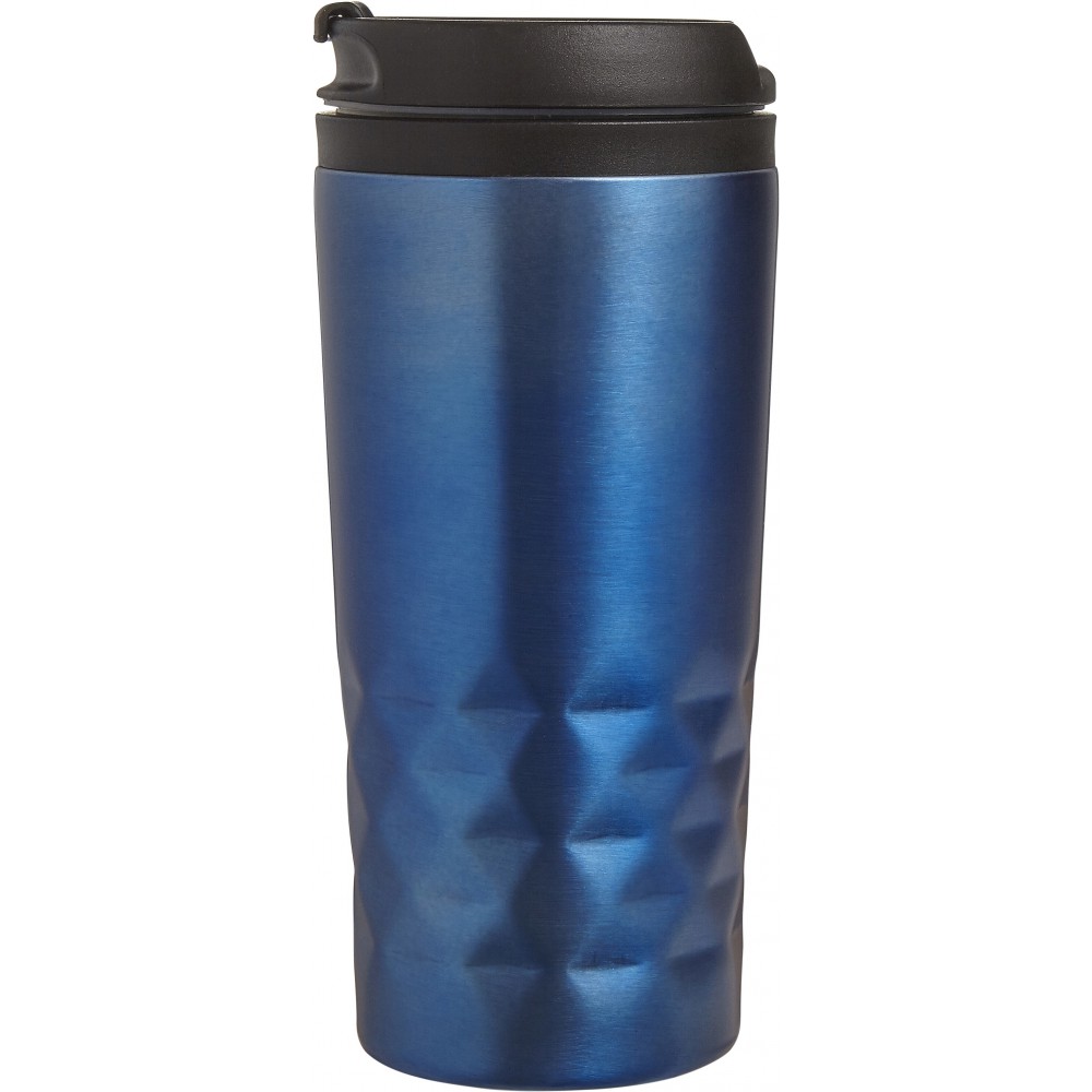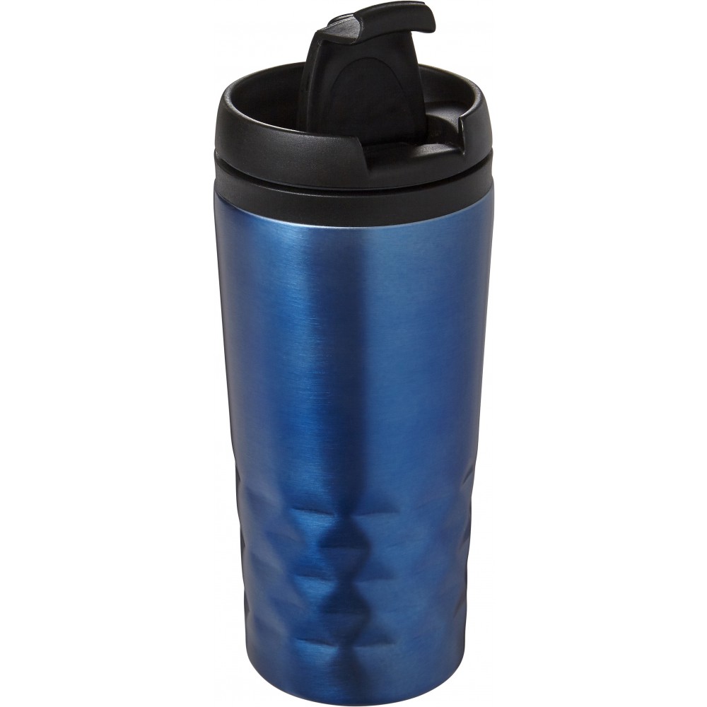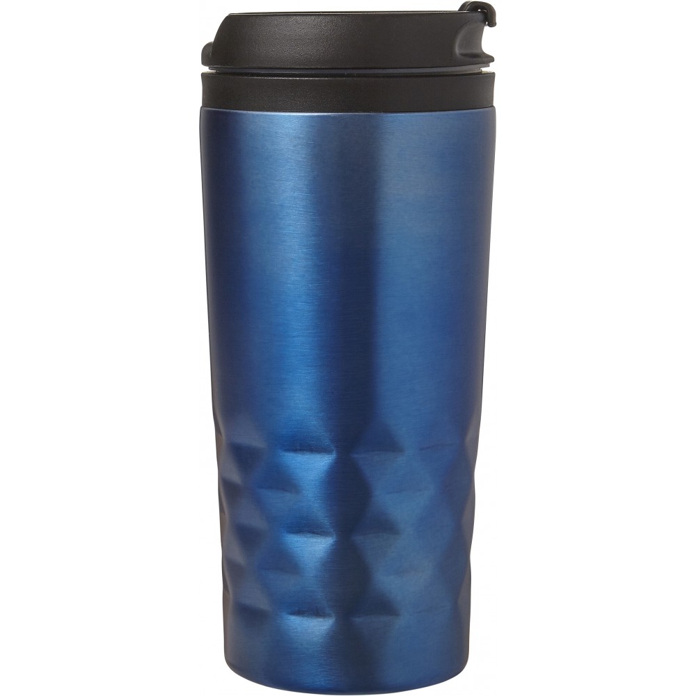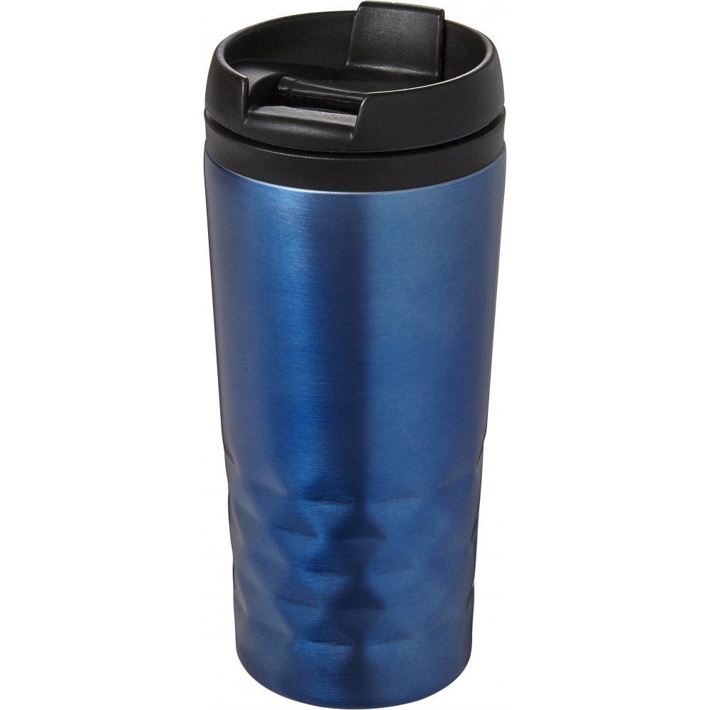Duplafalú fedeles pohár. 300 ml. Rozsdamentes acél és BPA-mentes műanyag. Nem szivárgásmentes és nem mosogatógépálló termék. Emblémázás: Gravírozás, Körszita, Tamponnyomás