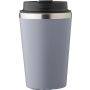 Rozsdamentes acélból és PP-ből készült utazópohár (350 ml). A PP fedél szilikon zárógyűrűvel rendelkezik, tetején lehajtható záróelemmel. Egyedileg csomagolva barna kartondobozban érkezik. Emblémázás: Tamponnyomás