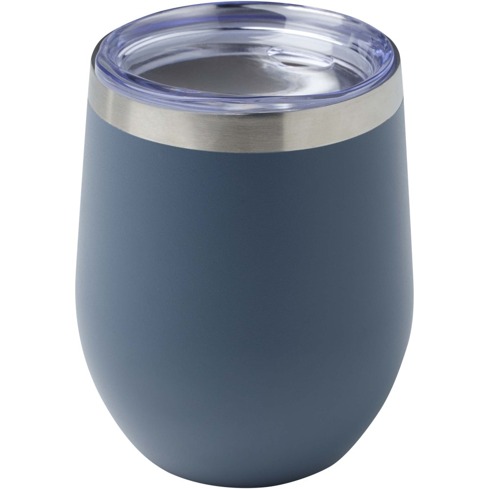 A Corzo RCS tanúsítvánnyal rendelkező rozsdamentes acélból készült, és duplafalú vákuum konstrukcióval rendelkezik réz szigeteléssel, amely 6 órán keresztül melegen, vagy 24 órán keresztül hidegen tartja az italokat. A konstrukció megakadályozza a kondenzációt a csésze külsején. Könnyen használható, nyomófedeles kialakítás. Az alsó részén porfestett bevonat található. Széles nyílás a kényelmes töltéshez és öntéshez. Űrtartalom: 350 ml. Újrahasznosított kartondobozban szállítjuk. Emblémázás: Gravírozás, Tamponnyomás