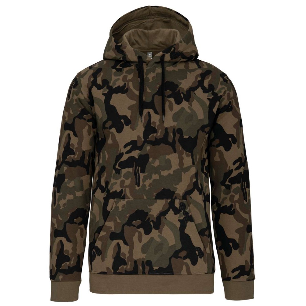 Kariban férfi kapucnis pulóver, Olive Camouflage