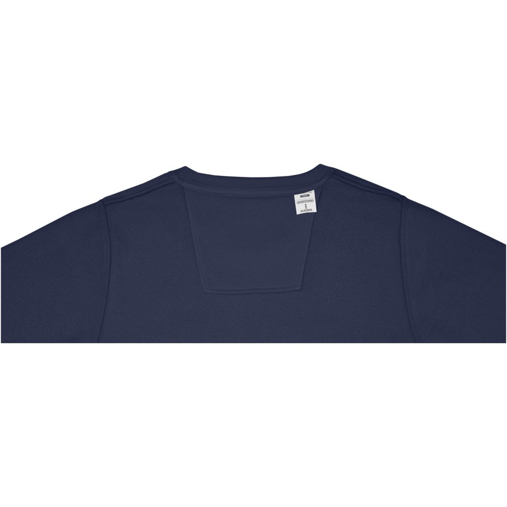 Kereknyakú pulóver belső emblémázási lehetőséggel. Kitéphető címke. Lapos kötésű, bordás nyak-, aljpasszé és kézelő. Belül bolyhos, puha felület. Saját szövetből készült nyakszalag. 50% pamut és 50% poliészter, 240 g / m2. Emblémázás: Hímzés, Szitanyomás