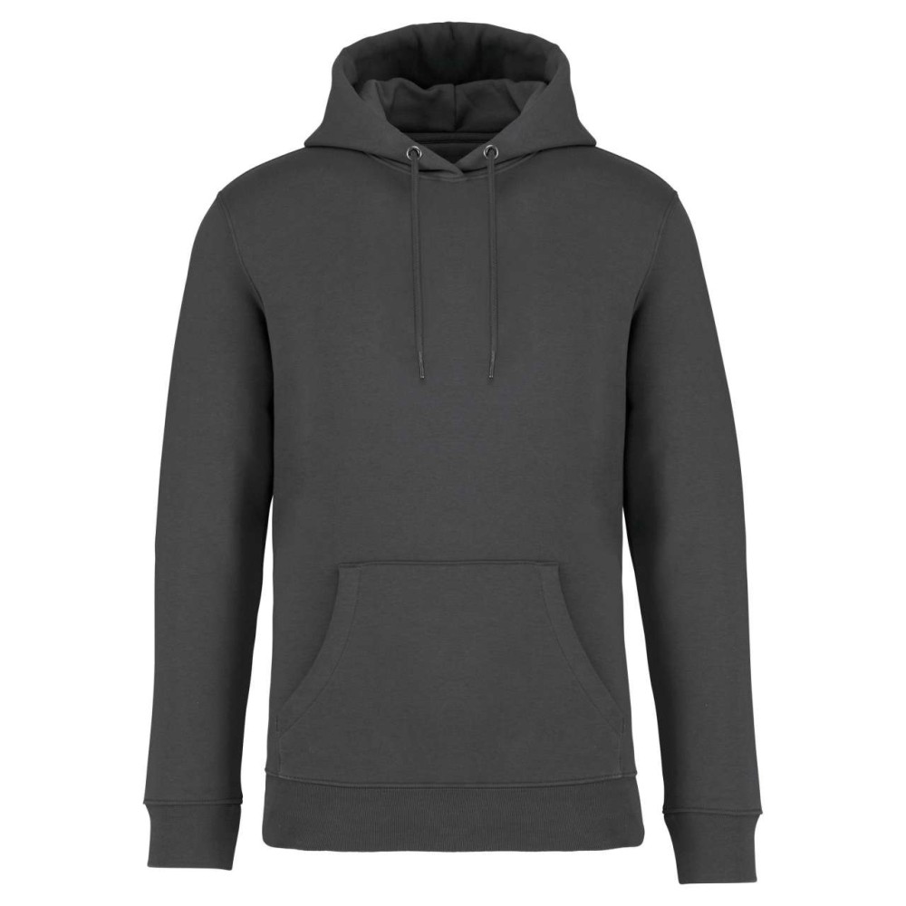 85 % bio, fésült pamutból és 15 % újrahasznosított poliészterből készült. Unisex. Egyenes szabás. Méretcímke organikus pamut és újrahasznosított poliészter logóval. LSF (Low Shrinkage Fleece: előzsugorított polár) kezelés. Kapucni. 1x1 bordás szegély és kézelő. Duplatűzés a kézelőn, a szegélyen és a nyaknál. Szalagozott nyakbelső hátul. Bélelt kapucni, a nyaknyíláson nincs felülvarrás, csak egy megkötés, hogy a húzózsinór a felső részen maradjon. Kerek húzózsinór a kapucnin fém véggel. Kenguru zseb. Nincs márkajelzés a nyakrészen, csak egy méretcímke a könnyű dekorálás érdekében. Karton függőcímkével érkezik, amely felsorolja a termék előállításához felhasznált környezetbarát anyagokat. Organikus pamutfonal. OEKO-TEX N CQ1007/7 STANDARD 100 tanúsítvánnyal rendelkezik. IFTH. 350 g/m2. Emblémázás: Hímzés, Szitanyomás