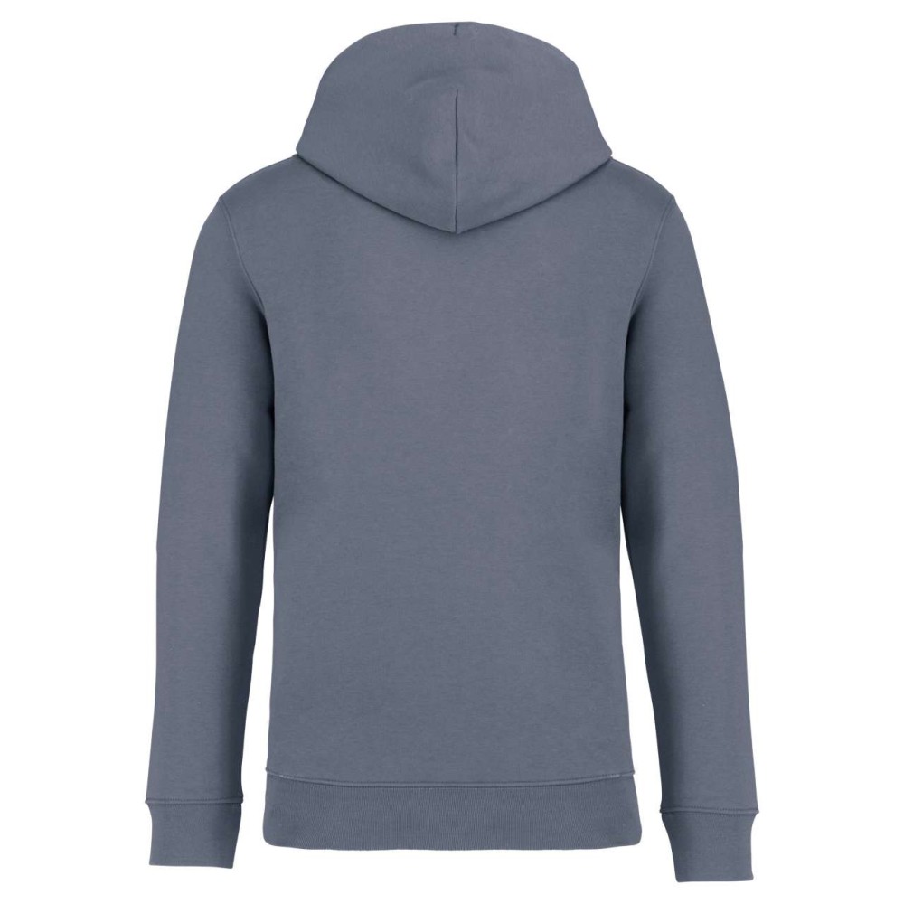 85 % bio, fésült pamutból és 15 % újrahasznosított poliészterből készült. Unisex. Egyenes szabás. Méretcímke organikus pamut és újrahasznosított poliészter logóval. LSF (Low Shrinkage Fleece: előzsugorított polár) kezelés. Kapucni. 1x1 bordás szegély és kézelő. Duplatűzés a kézelőn, a szegélyen és a nyaknál. Szalagozott nyakbelső hátul. Bélelt kapucni, a nyaknyíláson nincs felülvarrás, csak egy megkötés, hogy a húzózsinór a felső részen maradjon. Kerek húzózsinór a kapucnin fém véggel. Kenguru zseb. Nincs márkajelzés a nyakrészen, csak egy méretcímke a könnyű dekorálás érdekében. Karton függőcímkével érkezik, amely felsorolja a termék előállításához felhasznált környezetbarát anyagokat. Organikus pamutfonal. OEKO-TEX N CQ1007/7 STANDARD 100 tanúsítvánnyal rendelkezik. IFTH. 350 g/m2. Emblémázás: Hímzés, Szitanyomás