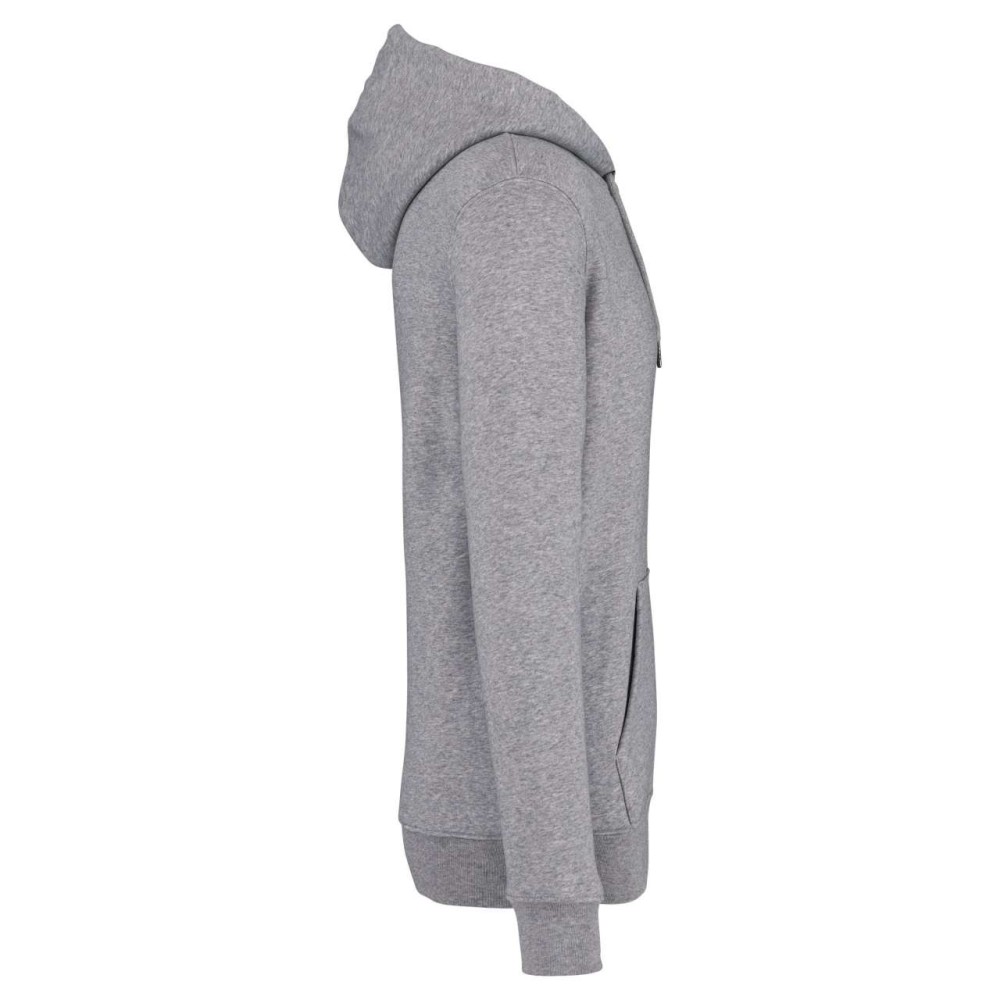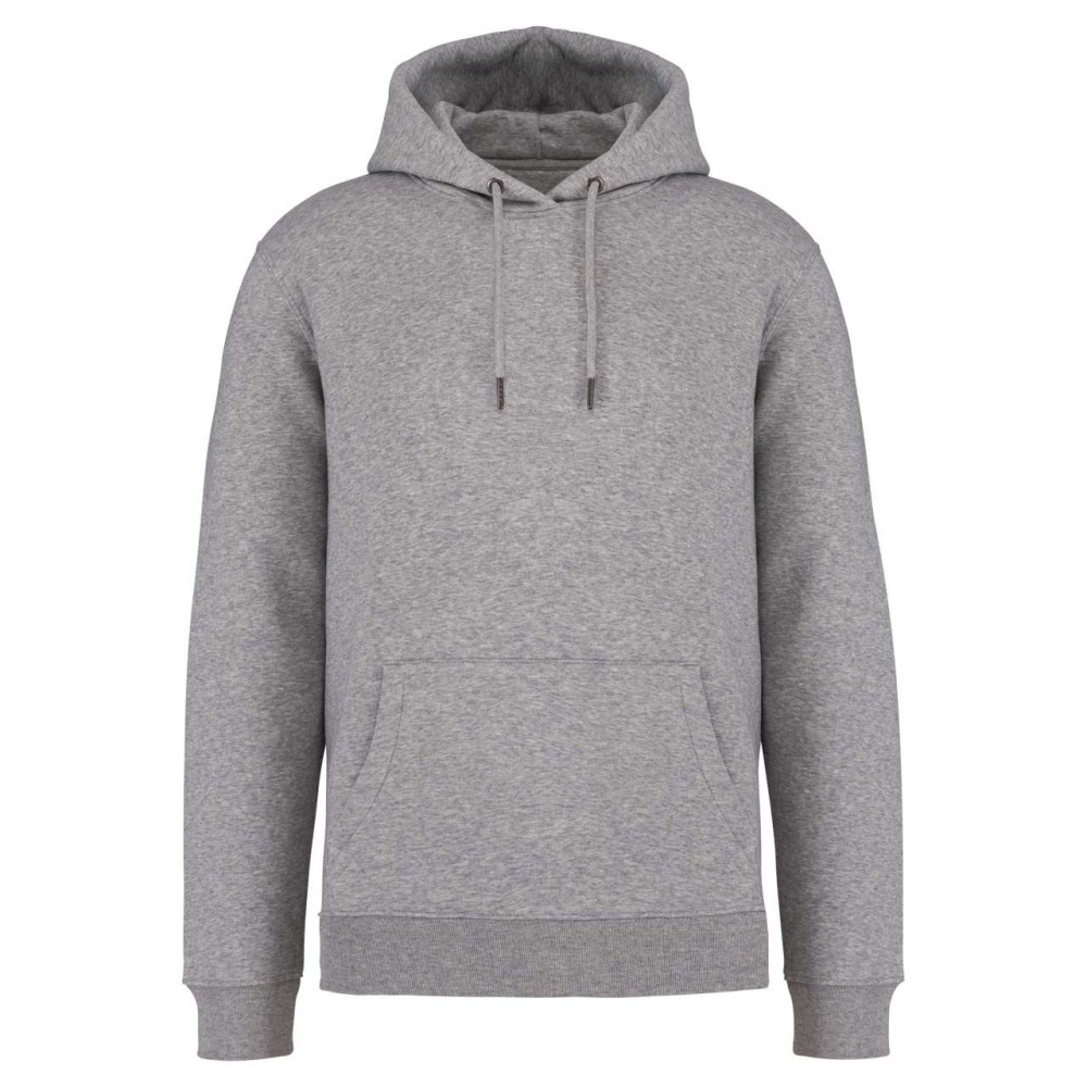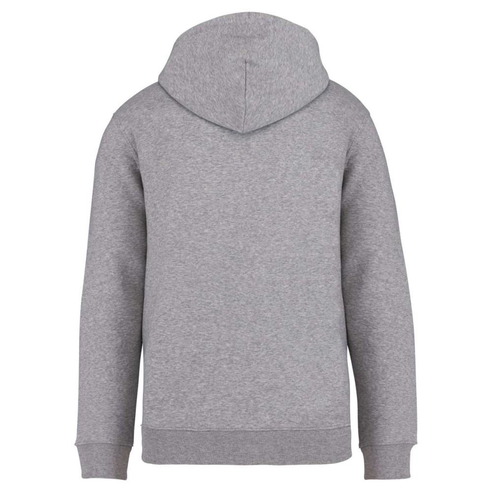85 % bio, fésült pamutból és 15 % újrahasznosított poliészterből készült. Unisex. Egyenes szabás. Méretcímke organikus pamut és újrahasznosított poliészter logóval. LSF (Low Shrinkage Fleece: előzsugorított polár) kezelés. Kapucni. 1x1 bordás szegély és kézelő. Duplatűzés a kézelőn, a szegélyen és a nyaknál. Szalagozott nyakbelső hátul. Bélelt kapucni, a nyaknyíláson nincs felülvarrás, csak egy megkötés, hogy a húzózsinór a felső részen maradjon. Kerek húzózsinór a kapucnin fém véggel. Kenguru zseb. Nincs márkajelzés a nyakrészen, csak egy méretcímke a könnyű dekorálás érdekében. Karton függőcímkével érkezik, amely felsorolja a termék előállításához felhasznált környezetbarát anyagokat. Organikus pamutfonal. OEKO-TEX N CQ1007/7 STANDARD 100 tanúsítvánnyal rendelkezik. IFTH. 350 g/m2. Emblémázás: Hímzés, Szitanyomás