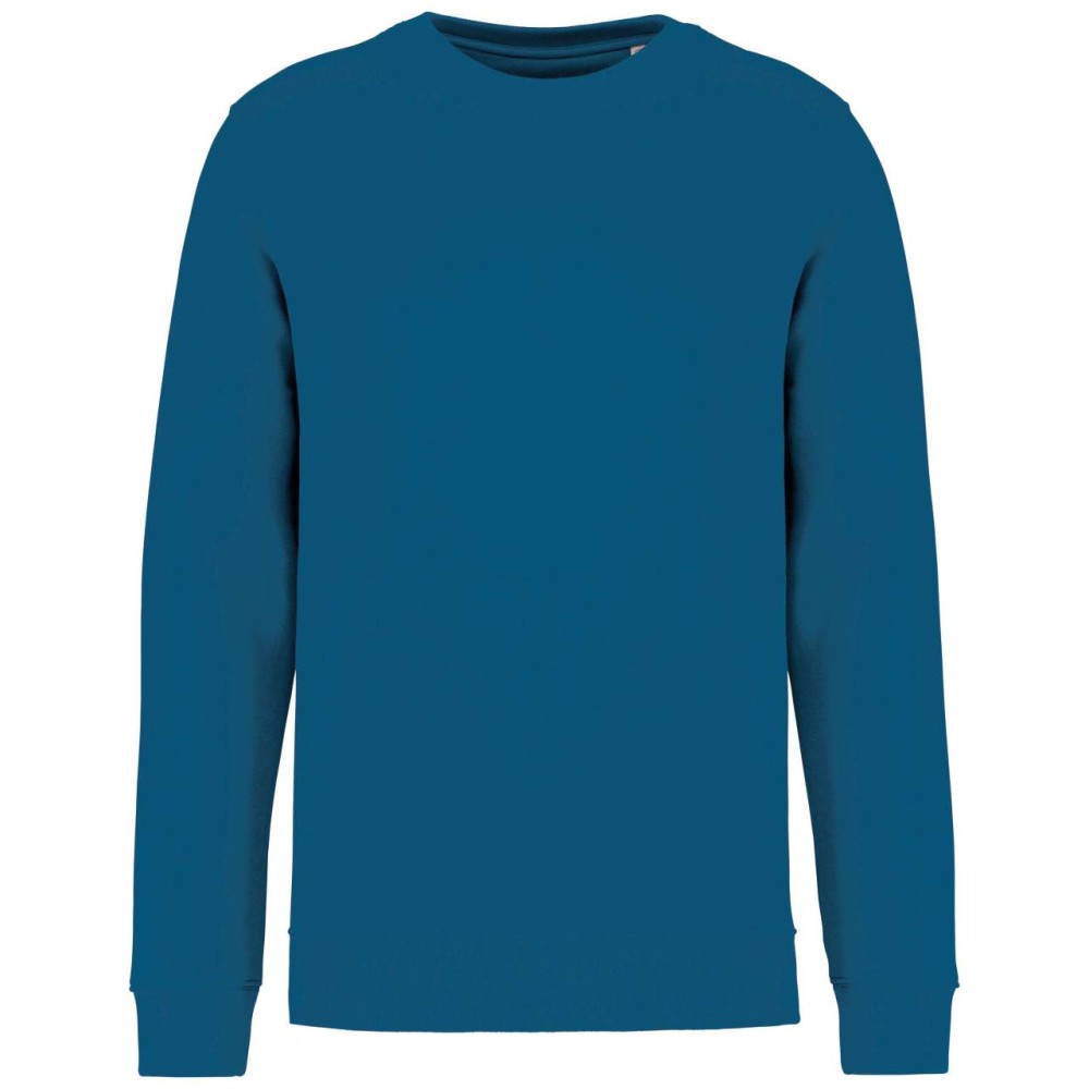 85 % bio, fésült pamutból és 15 % újrahasznosított poliészterből készült. Unisex. Egyenes szabás. LSF (Low Shrinkage Fleece: előzsugorított polár). Kerek nyakkivágás. Félhold alakú. Méretcímke organikus pamut és újrahasznosított poliészter logóval. 1x1 bordás nyakpasszé, alsó szegély és kézelő. Duplaöltés a kézelőn, karöltőben és kézelőn. Egyszeres felülvarrás a nyakkivágáson. Belső szalagozott nyakrész. A nyakrészen nincs márkajelzés, csak méretcímke a könnyebb dekorálás érdekében. A ruhadarabhoz kartonpapírból készült ismertetővel, amely felsorolja a felhasznált környezetbarát anyagokat. OEKO-TEX N CQ1007/7 STANDARD 100 tanúsítvánnyal rendelkezik. IFTH. 350 g/m2. Emblémázás: Hímzés, Szitanyomás