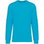 85 % bio, fésült pamutból és 15 % újrahasznosított poliészterből készült. Unisex. Egyenes szabás. LSF (Low Shrinkage Fleece: előzsugorított polár). Kerek nyakkivágás. Félhold alakú. Méretcímke organikus pamut és újrahasznosított poliészter logóval. 1x1 bordás nyakpasszé, alsó szegély és kézelő. Duplaöltés a kézelőn, karöltőben és kézelőn. Egyszeres felülvarrás a nyakkivágáson. Belső szalagozott nyakrész. A nyakrészen nincs márkajelzés, csak méretcímke a könnyebb dekorálás érdekében. A ruhadarabhoz kartonpapírból készült ismertetővel, amely felsorolja a felhasznált környezetbarát anyagokat. OEKO-TEX N CQ1007/7 STANDARD 100 tanúsítvánnyal rendelkezik. IFTH. 350 g/m2. Emblémázás: Hímzés, Szitanyomás
