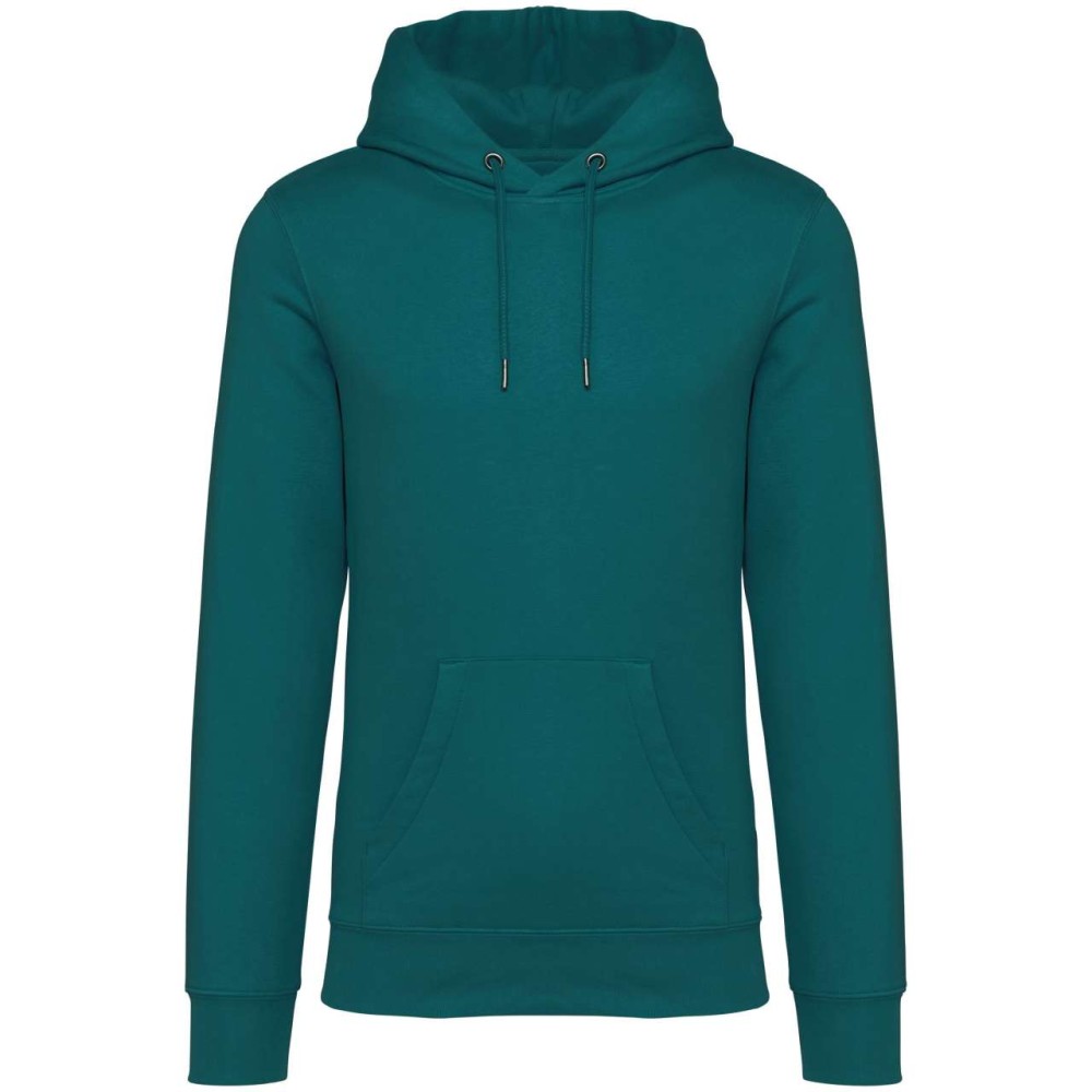 85 % bio, fésült pamutból és 15 % újrahasznosított poliészterből készült. Unisex. Egyenes szabás. Méretcímke organikus pamut és újrahasznosított poliészter logóval. LSF (Low Shrinkage Fleece: előzsugorított polár) kezelés. Kapucni. 1x1 bordás szegély és kézelő. Duplatűzés a kézelőn, a szegélyen és a nyaknál. Szalagozott nyakbelső hátul. Bélelt kapucni, a nyaknyíláson nincs felülvarrás, csak egy megkötés, hogy a húzózsinór a felső részen maradjon. Kerek húzózsinór a kapucnin fém véggel. Kenguru zseb. Nincs márkajelzés a nyakrészen, csak egy méretcímke a könnyű dekorálás érdekében. Karton függőcímkével érkezik, amely felsorolja a termék előállításához felhasznált környezetbarát anyagokat. Organikus pamutfonal. OEKO-TEX N CQ1007/7 STANDARD 100 tanúsítvánnyal rendelkezik. IFTH. 350 g/m2. Emblémázás: Hímzés, Szitanyomás