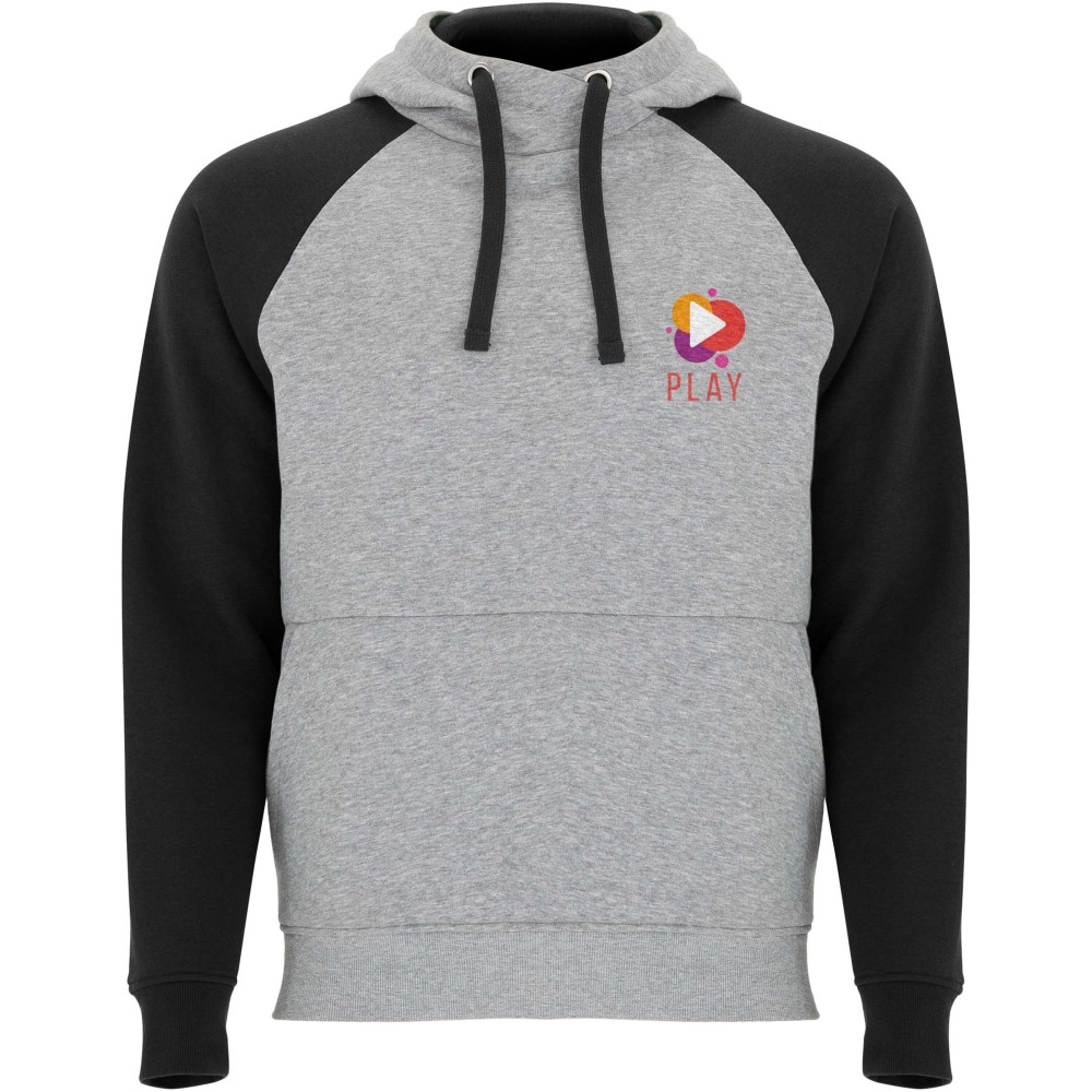 Roly Badet uniszex kapucnis pulóver, Solid black, Heather grey