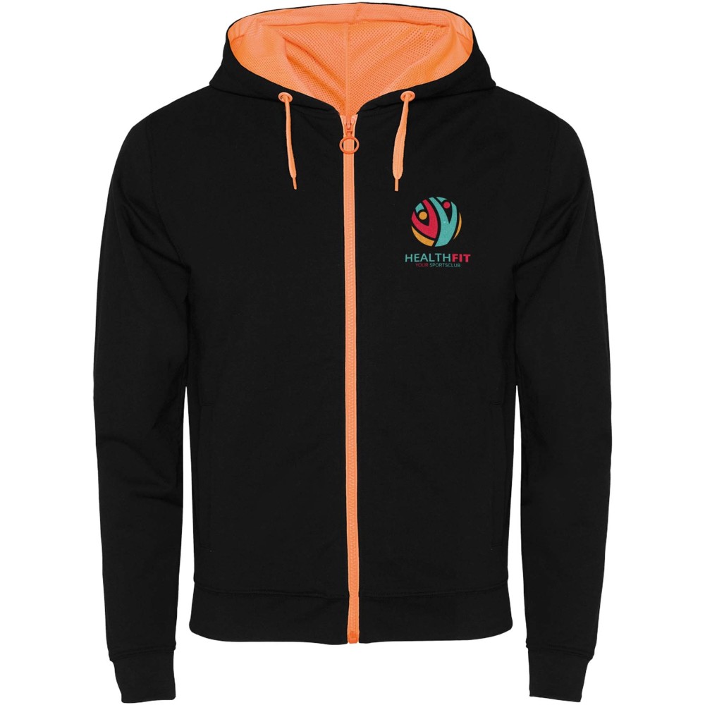 Roly Fuji uniszex cipzáros pulóver, Solid black, Fluor Orange
