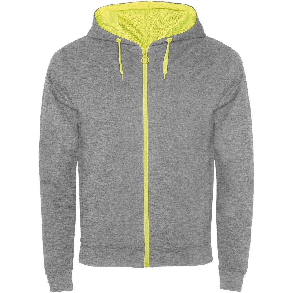 Roly Fuji uniszex cipzáros pulóver, Heather grey, Fluor Yellow