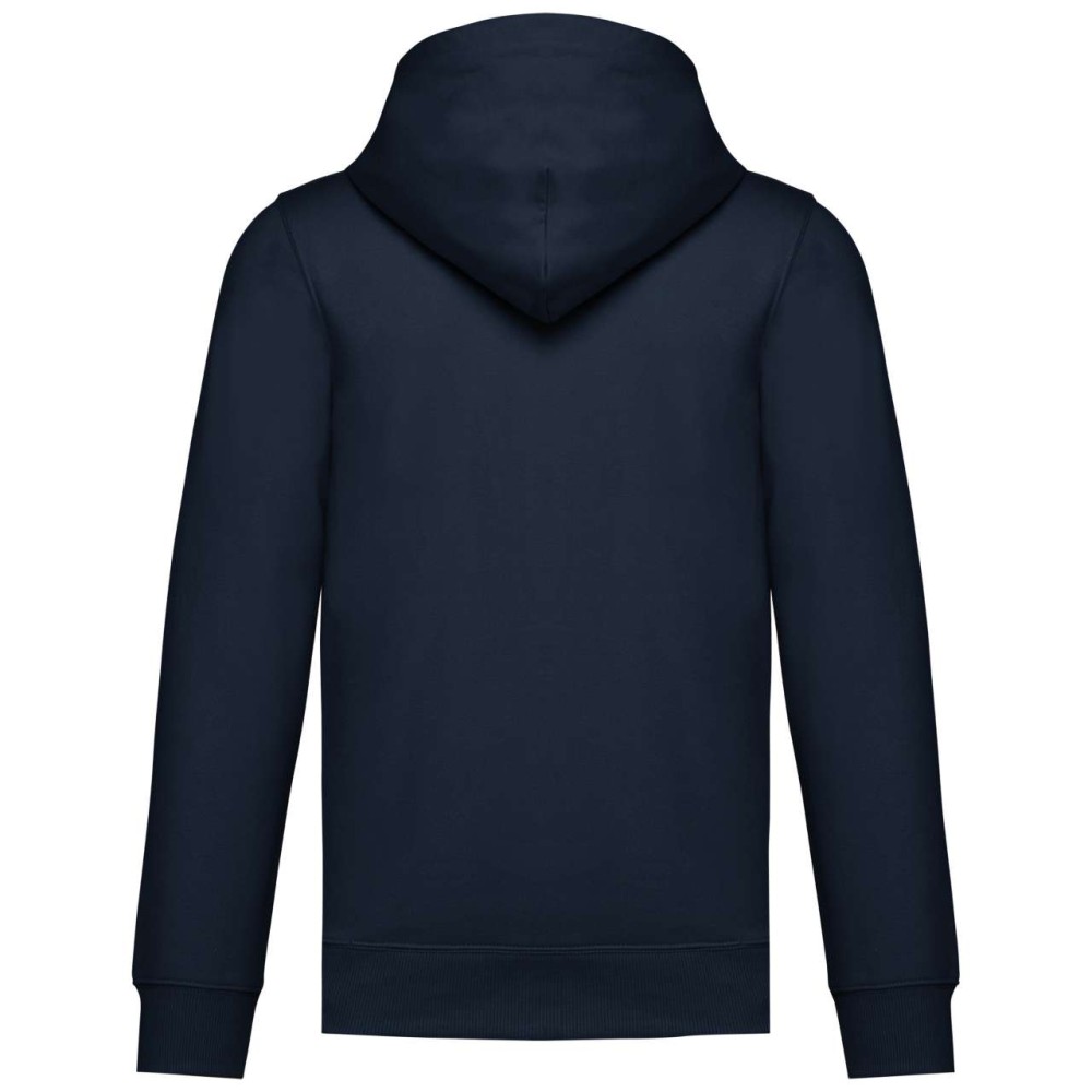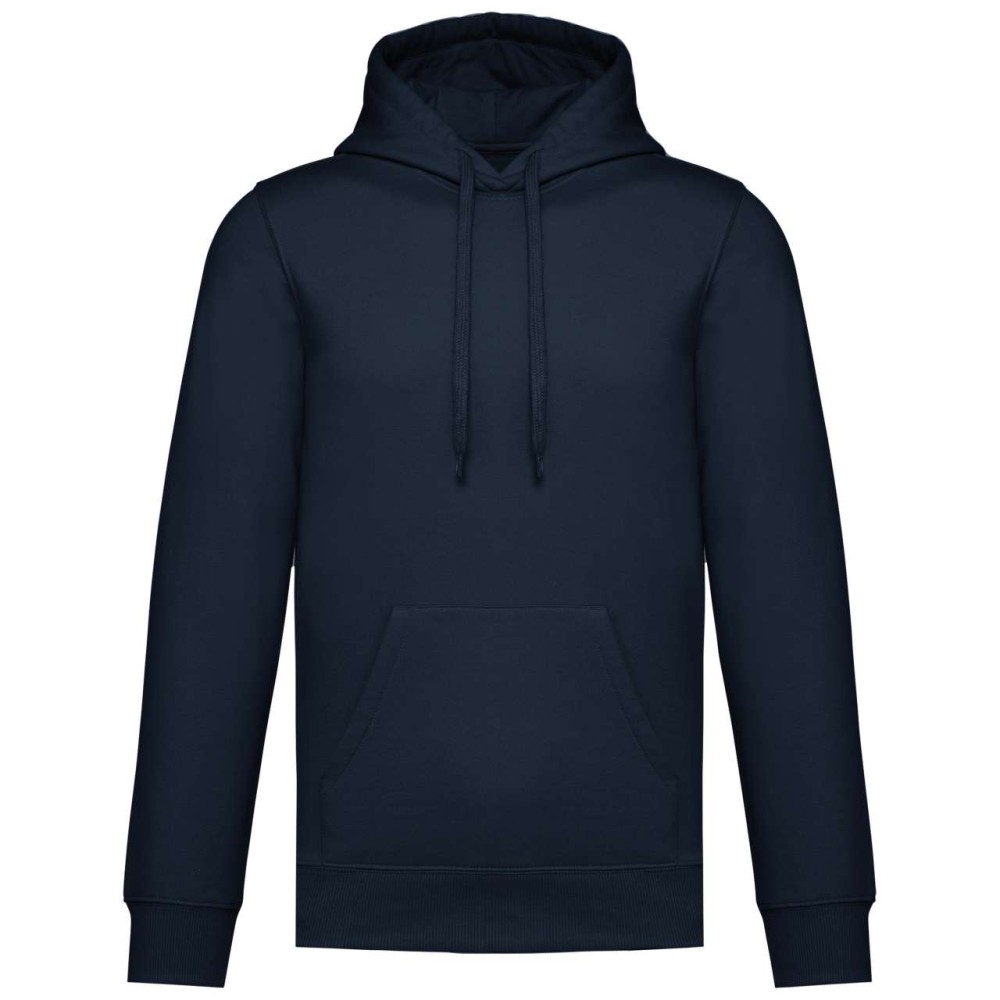 50% gyűrűs fonású pamut / 50% újrahasznosított poliészter, fésült pamut. Egyenes szabású, vágott és varrott. 1x1 bordás kötés a nyakkivágás, a mandzsetta és az alsó szegély jobb megjelenése érdekében. Kenguruzseb. Policotton dzsörzé bélésű kapucni lapos húzózsinórral. Színben illeszkedő dzsörzé szalagos belső a nyakkivágásnál. Csak méretcímke márkajelzés nélkül. Emblémázás: Hímzés, Szitanyomás