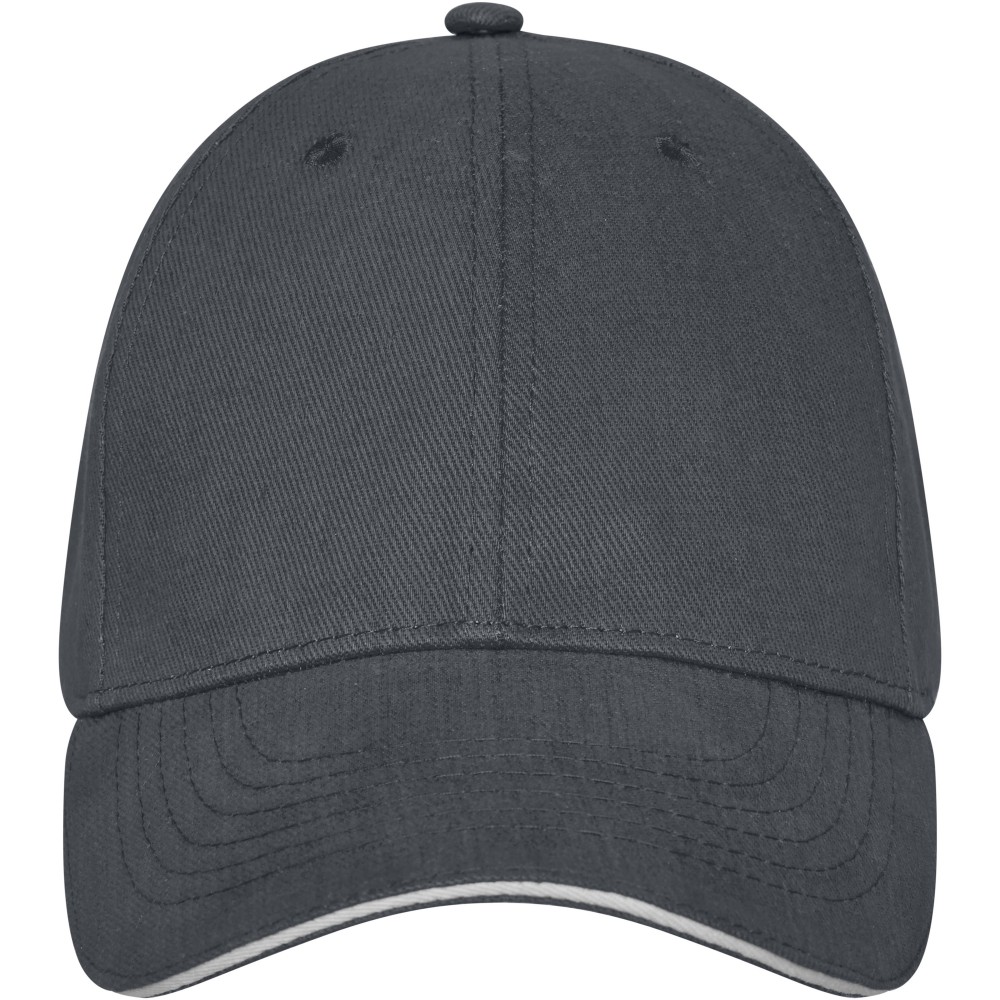 6 paneles szendvics baseballsapka ívelt simléderrel, hímzett szellőzőkkel, fém csattal. 100% twill pamut, 260 g/m2. Emblémázás: Hímzés, Szitanyomás