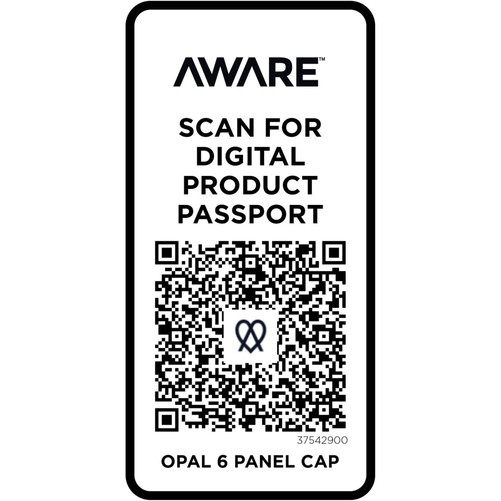 Az Opal 6 paneles sapka 70%-ban újrahasznosított pamutból és 30%-ban újrahasznosított poliészterből készült. Úgy tervezték, hogy 58 cm-es fejkörfogatnál kényelmesen illeszkedjen, a fémcsatos záródás pedig könnyű és biztonságos beállítást tesz lehetővé. A sapka Cyclo újrahasznosított szálakat tartalmaz, ahol előválogatott hulladékot használnak, amely meghatározza a fonal színét. Ezek a szálak nem csak a szűz erőforrások iránti igényt csökkentik, hanem a körkörös élet iránti elkötelezettséget is mutatják, megtestesítve a hulladékcsökkentés lényegét. Minden sapkához egy Aware nyomjelző is tartozik. Ez az innovatív funkció lehetővé teszi a felhasználók számára, hogy egy QR-kód segítségével nyomon követhessék a termék eredetét és útját, növelve az ellátási lánc átláthatóságát, és elősegítve a termék és a gyártási folyamat közötti szorosabb kapcsolatot. Emblémázás: Hímzés, Szitanyomás