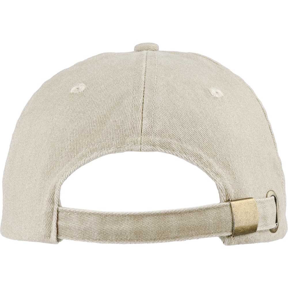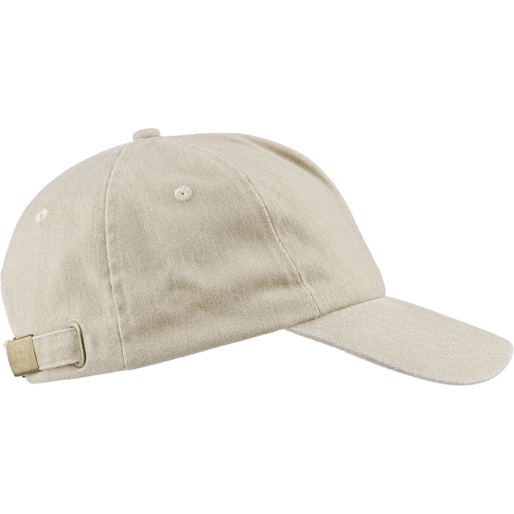 5 paneles baseballsapka 240 g/m2 vászon anyagból, koptatott hatású kivitelben, 7 cm-es ellenzővel, fémcsattal állítható pánttal. Bélés nélkül. Emblémázás: Hímzés, Szitanyomás