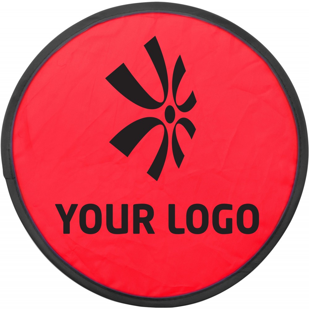 Összehajtható frizbi tasakkal. Kinyitva : d: 25 cm Emblémázás: Szitanyomás