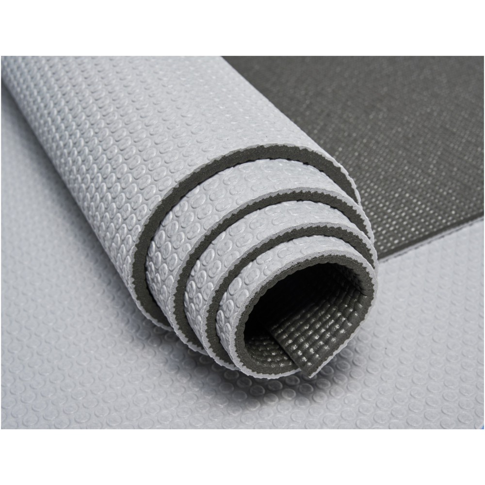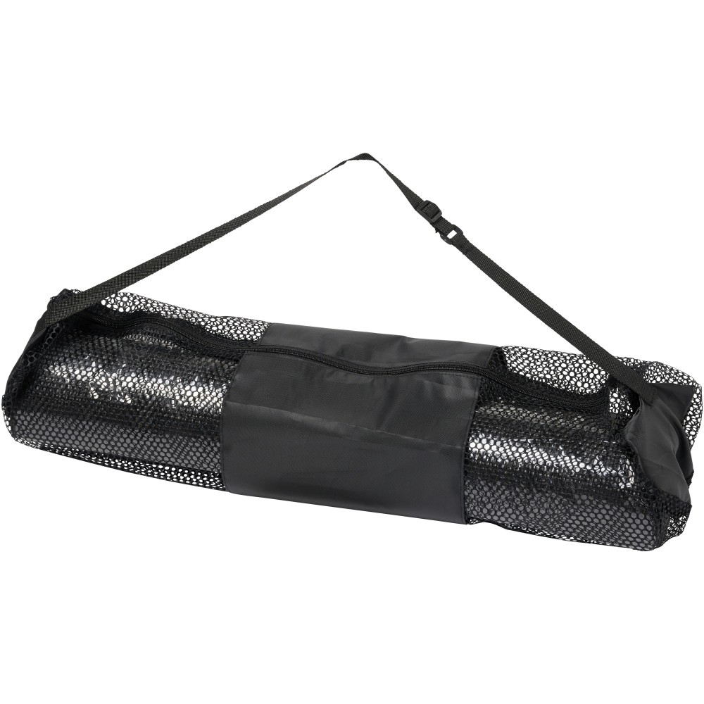 Jógaszőnyeg texturált felülettel és kiváló tapadással. 6 mm-es vastagság a kényelemért térdelésben, ülésben és egyéb pózokban. Elég könnyű ahhoz, hogy felcsavarható és hordozható legyen a vállpánttal ellátott hálós tasakban. Nagy dekorációs terület a hordtáskán. Mérete: 170 X 60 cm. Emblémázás: Szitanyomás