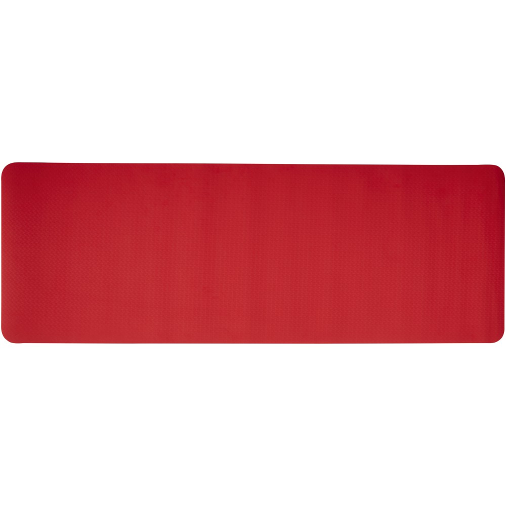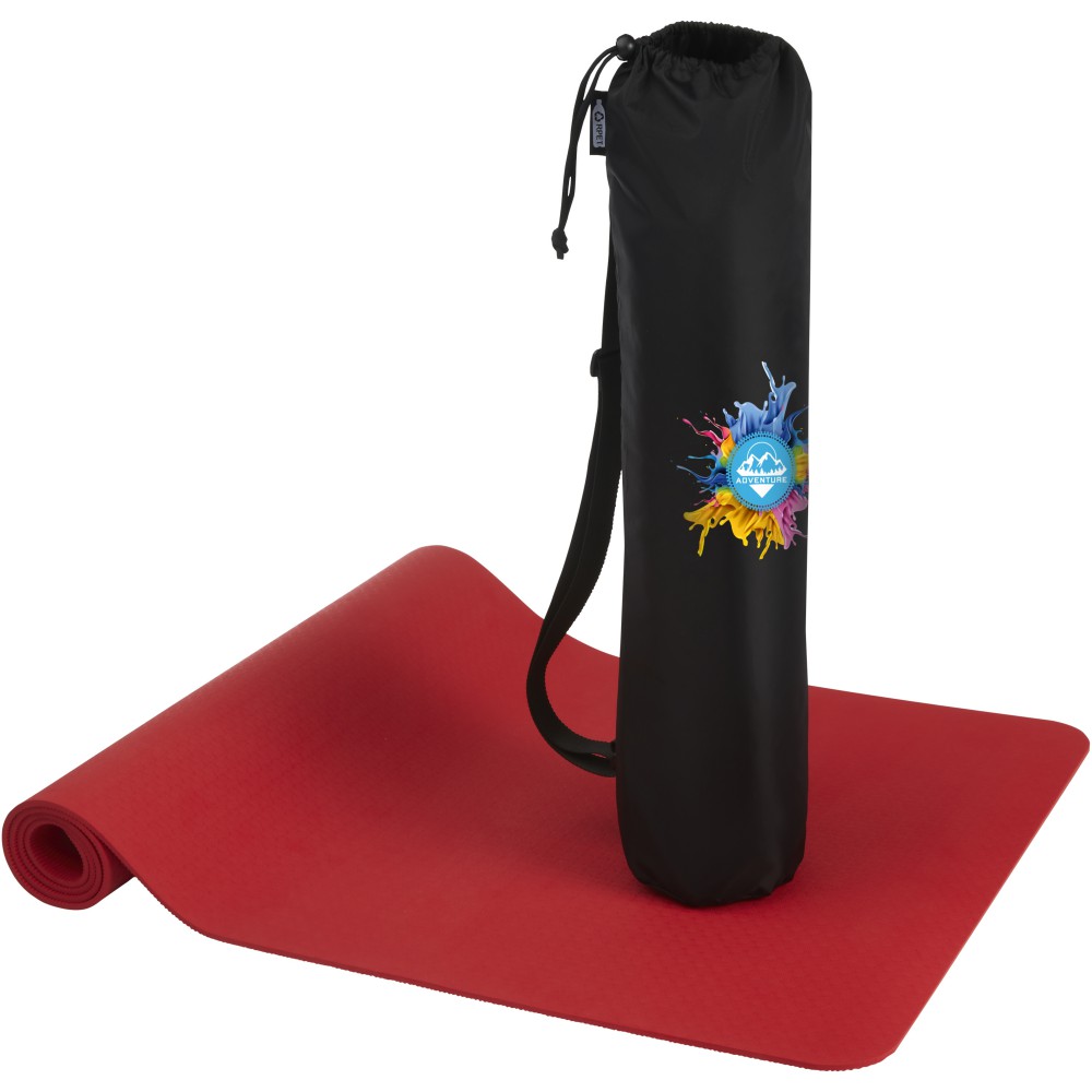 Újrahasznosított TPE műanyagból készült jógaszőnyeg. A TPE természetes csúszásgátló tulajdonságokkal rendelkezik, így stabil felületet biztosít, amely segít megelőzni a csúszást a jógapózok során. Az újrahasznosított TPE felhasználása a jógaszőnyegek gyártása során segít csökkenteni a hulladékok mennyiségét, és elősegíti a környezet fenntarthatóságát azáltal, hogy minimalizálja az új műanyagok használatát. Mérete: 173 x 61 x 0,6 cm. A tasak RPET anyagból készült. Emblémázás: Szitanyomás