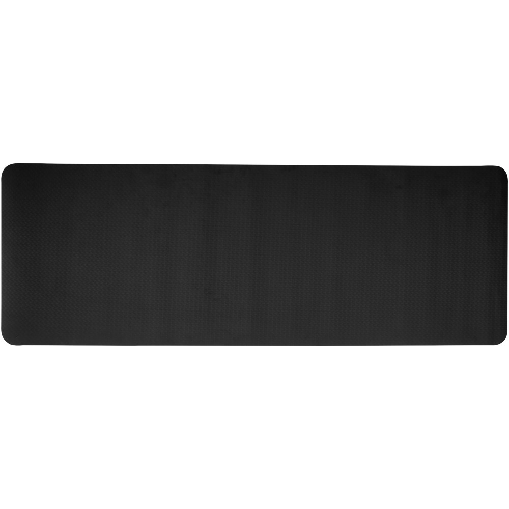 Újrahasznosított TPE műanyagból készült jógaszőnyeg. A TPE természetes csúszásgátló tulajdonságokkal rendelkezik, így stabil felületet biztosít, amely segít megelőzni a csúszást a jógapózok során. Az újrahasznosított TPE felhasználása a jógaszőnyegek gyártása során segít csökkenteni a hulladékok mennyiségét, és elősegíti a környezet fenntarthatóságát azáltal, hogy minimalizálja az új műanyagok használatát. Mérete: 173 x 61 x 0,6 cm. A tasak RPET anyagból készült. Emblémázás: Szitanyomás