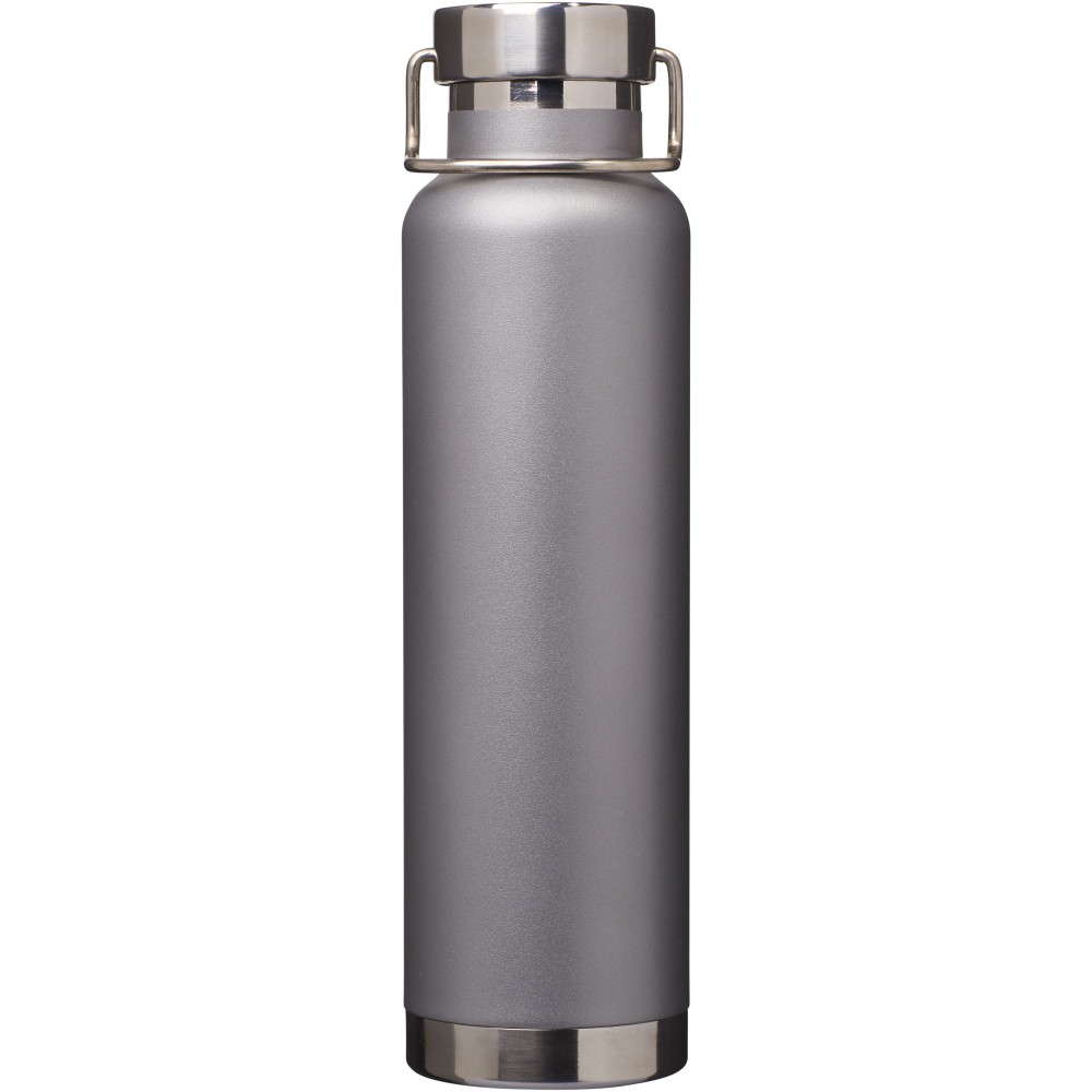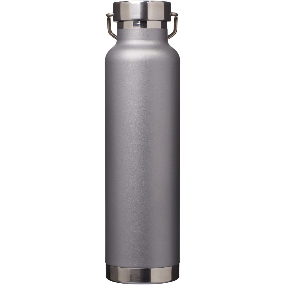 Thor duplafalú vákumos palack. Belső fala réz, ennek köszönhetően 48 órás hideg- és 12 órás melegtartási képességgel rendelkezik. Ez a kialakítás megakadályozza a kondenzációt a palack külső falán. A termoszhoz csavaros, rozsdamentes acél kupak tartozik. Széles kiöntő nyílással rendelkezik, amely akár jégkockák behelyezésére is alkalmas. Szivárgásmentes. Szénsavas italokkal nem használható. Mosogatógépben nem mosható és mikrohullámú sütőben történő melegítésre nem alkalmas. Űrtartalom: 650 ml. Csomagolása Avenue díszdoboz. Rozsdamentes acél. Emblémázás: Gravírozás, Tamponnyomás