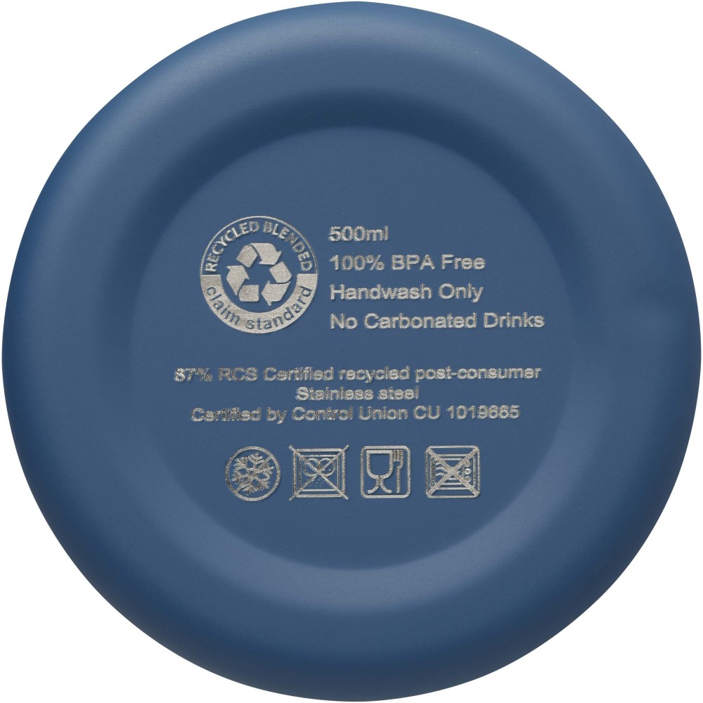 Rézvákuum szigetelésű, RCS tanúsítvánnyal rendelkező rozsdamentes acél palack letisztult dizájnnal. Az szigetelt rozsdamentes acél szerkezet megakadályozza a kondenzációt a palack belsejében, és a trendi matt porfestett felület extra tartóssá teszi. BPA-mentes, német élelmiszerbiztonsági jogszabály (LFGB) szerint tesztelt és jóváhagyott. Ftalát-tartalom szerint REACH szabályozásoknak megfelelően tesztelt és jóváhagyott. Űrtartalom: 500 ml. Kézi mosogatás javasolt. Újrahasznosított kartondobozban szállítjuk. Emblémázás: Bögredekor, Gravírozás