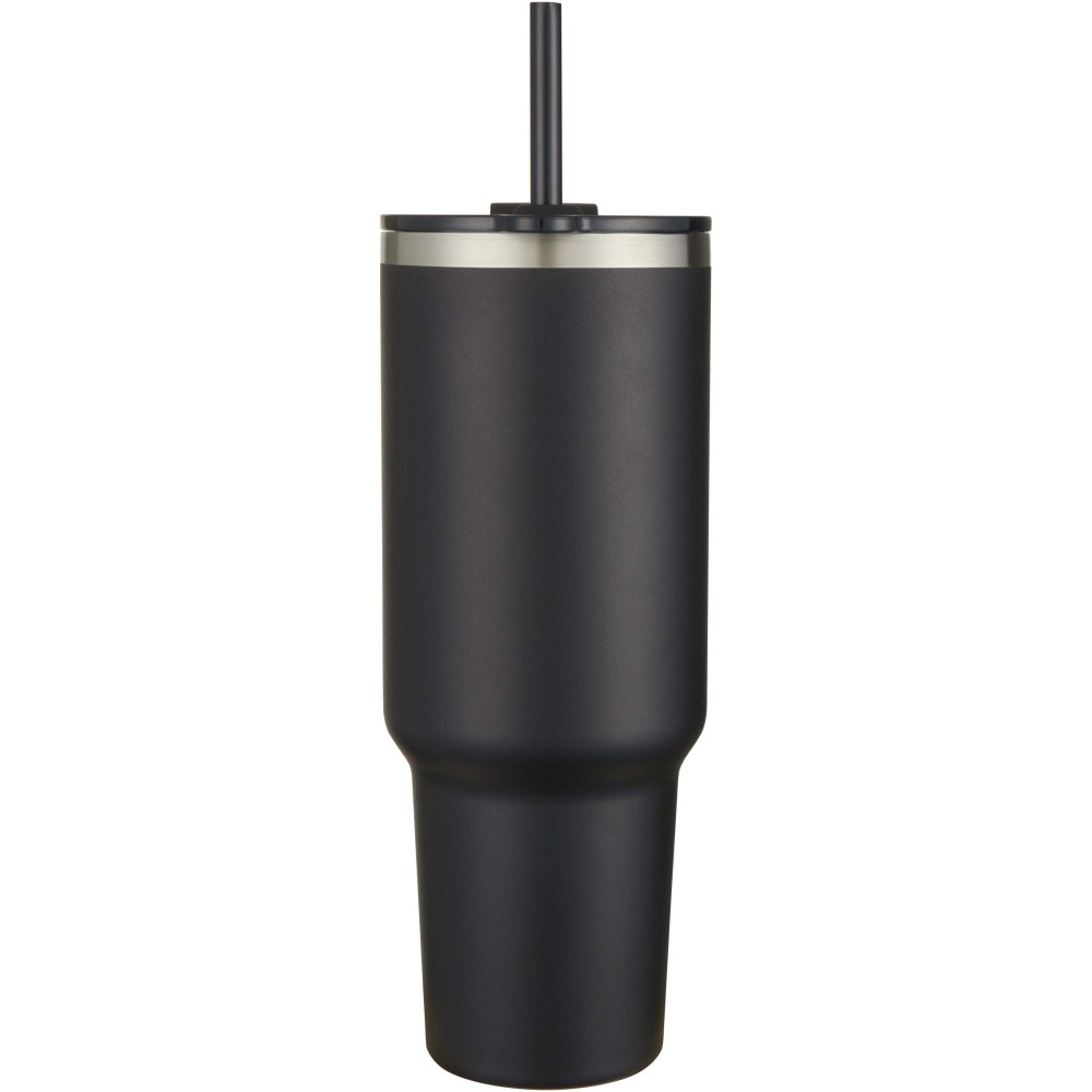 RCS tanúsítvánnyal rendelkező duplafalú rézvákuum szigetelésű pohár, amely 91%-ban használt rozsdamentes acélból készült és legalább 24 órán keresztül hidegen tartja az italokat. Tritan szívószállal rendelkezik, és csúsztatható fedél funkcióval van ellátva, amely megakadályozza a kiömlést. A 100%-ban újrahasznosított műanyag nyomófedél biztonságosan tartja a szívószálat a helyén, és könnyen forgatható, hogy hozzáférj az ivónyíláshoz. Tartós külső porfestett bevonat. Űrtartalom: 1200 ml. Kézi mosogatás javasolt. Stanley hasonmás. Emblémázás: Gravírozás, Tamponnyomás
