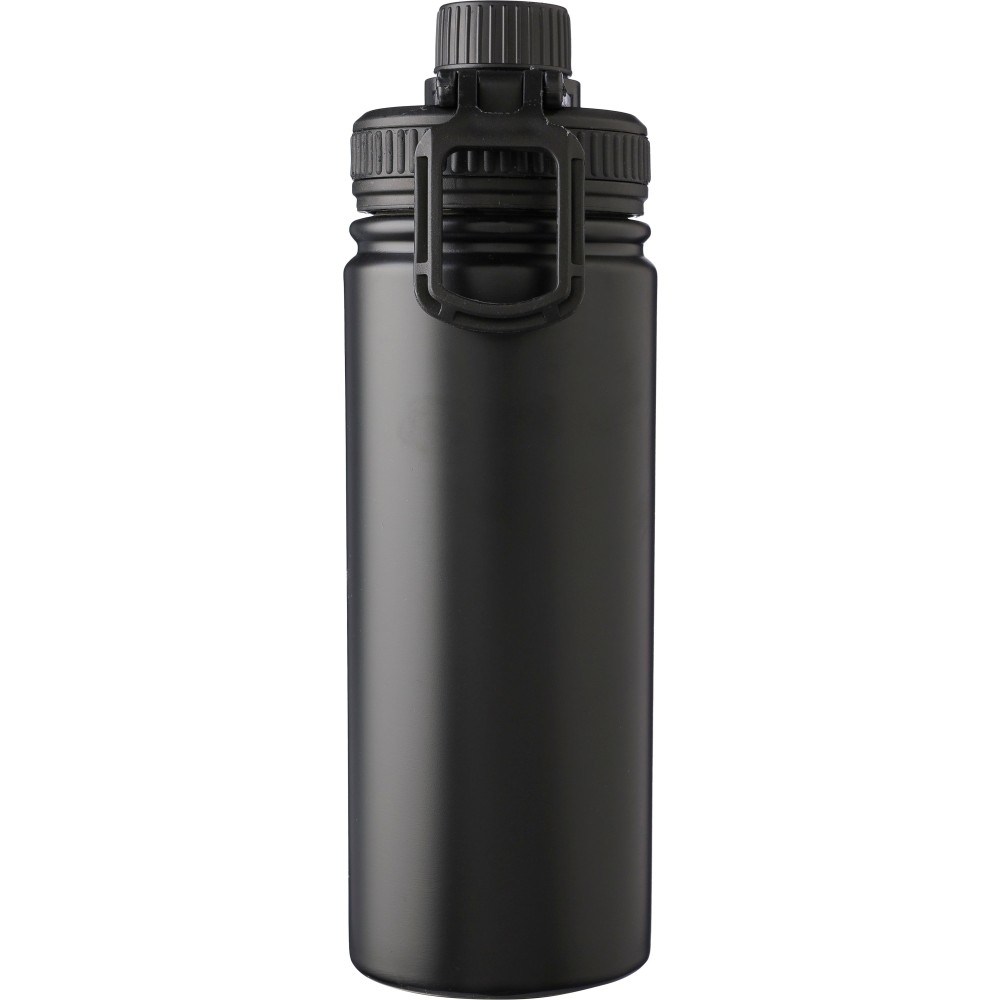 Duplafalú palack PP fedéllel, PP csavaros adagolóval és hordozófogantyúval. A belső rész 304-es, a külső 201-es rozsdamentes acél . Egyedi csomagolásban, barna kartondobozban. Űrtartalom: 500 ml. Emblémázás: Gravírozás