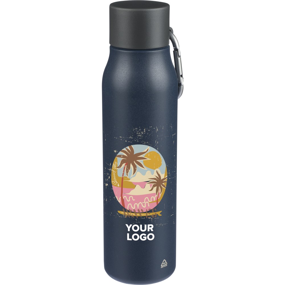 Újrahasznosított rozsdamentes acélból készült palack (600 ml-es). A belső anyaga 304-es, a külső anyaga pedig 201-es rozsdamentes acél. Szivárgásmentes PP kupakkal és alumínium karabinerrel. A karabiner mászáshoz nem alkalmas. A palack a benne tárolt italt 6 órán át melegen vagy 9 órán át hidegen tartja. Az újrahasznosított anyagra utaló logó a palackra van gravírozva. Csomagolása barna papírdoboz. Emblémázás: Gravírozás, Körszita, Tamponnyomás