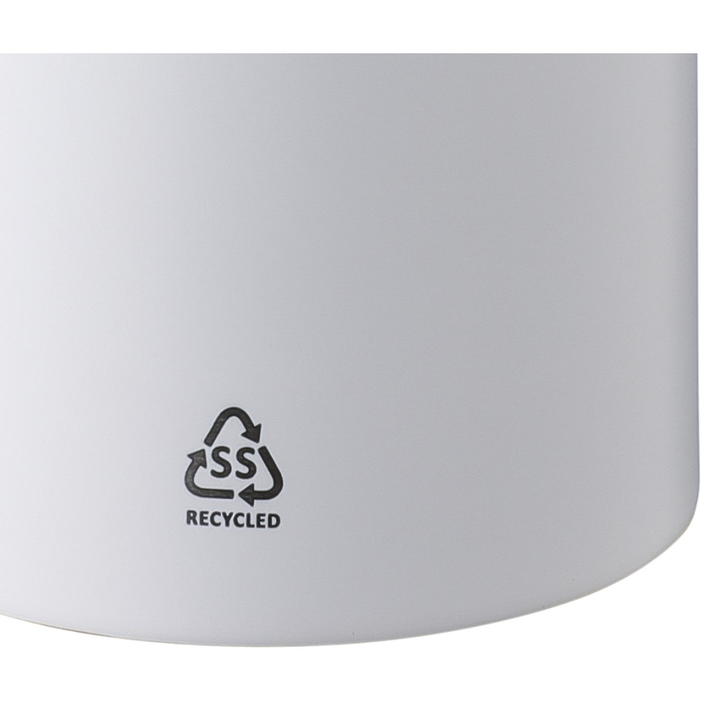 Újrahasznosított rozsdamentes acélból készült 500 ml-es palack PP kupakkal és alumínium karabinerrel. A kulacs a benne tárolt italt 8 órán át melegen, 12 órán át pedig hidegen tartja. Az ezüst szín kivételével külső felülete matt. Az újrahasznosított anyagra utaló logó a palackra van gravírozva. Mosogatógépben nem tisztítható. Csomagolása barna papírdoboz. Emblémázás: Bögredekor, Gravírozás
