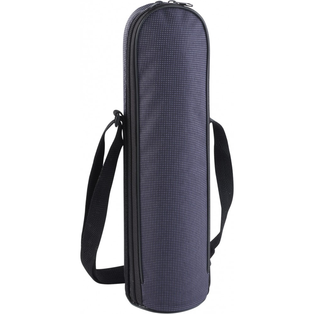 Termosz kék színű pántos tokban. Rozsdamentes acél. Nem szivárgásmentes. Mosogatógépben nem tisztítható. 750 ml. Emblémázás: Bögredekor, Gravírozás, Tamponnyomás