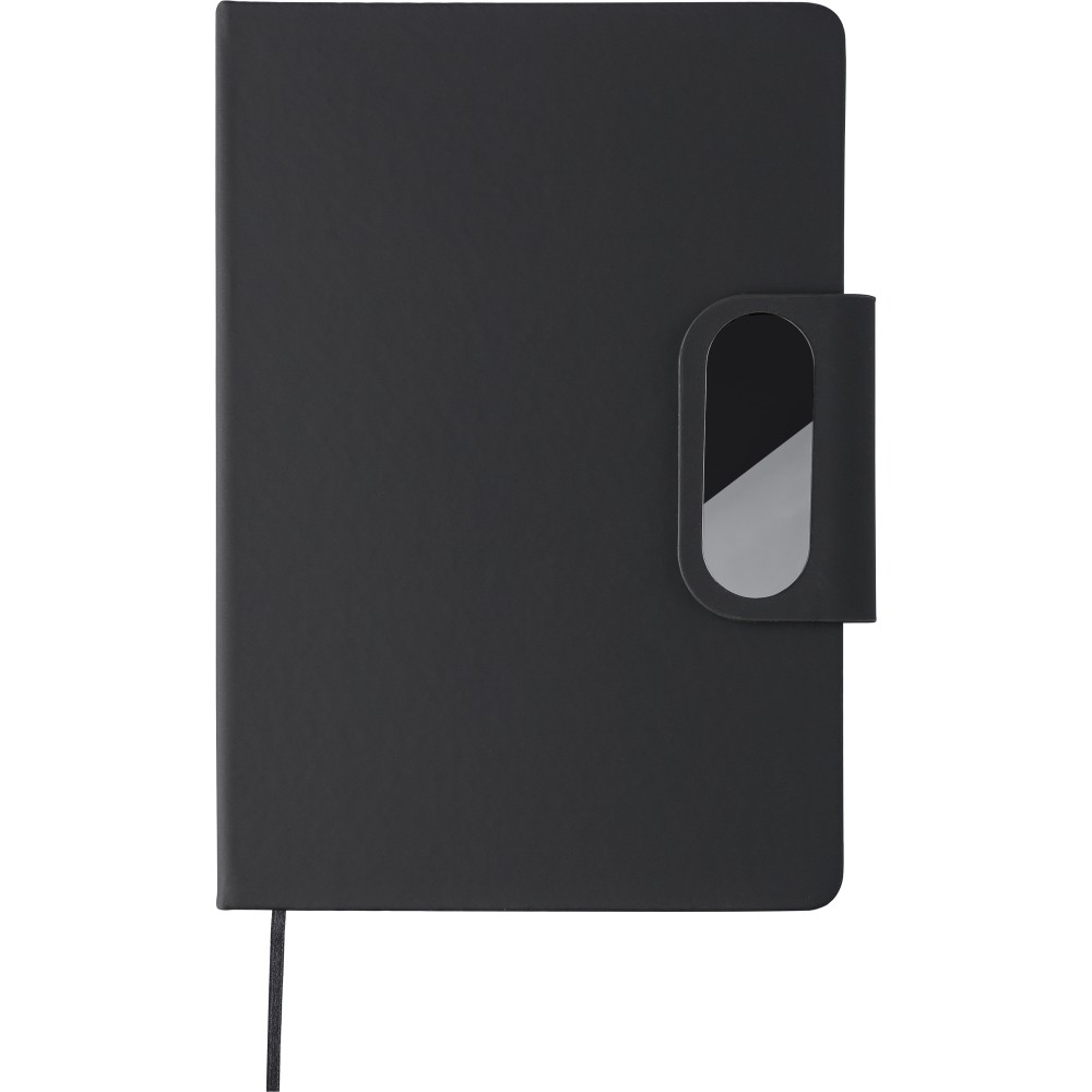 Karton ajándékkészlet duplafalú, újrahasznosított rozsdamentes acél kulaccsal (304 belül és kívül) szilikon fogantyúval, újrahasznosított alumínium csavaros golyóstollal (kék tintával), és újrahasznosított PU jegyzetfüzettel. A jegyzetfüzet 80 lapos, 70 g/m2-es vonalas lapokból áll, szalagos könyvjelzőt és fém mágneses zárat tartalmaz fegyveracél gravírozott lemezzel. Minden termék újrahasznosított logóval van ellátva. Emblémázás: Bögredekor, Gravírozás, Matricázás, Szitanyomás, Tamponnyomás