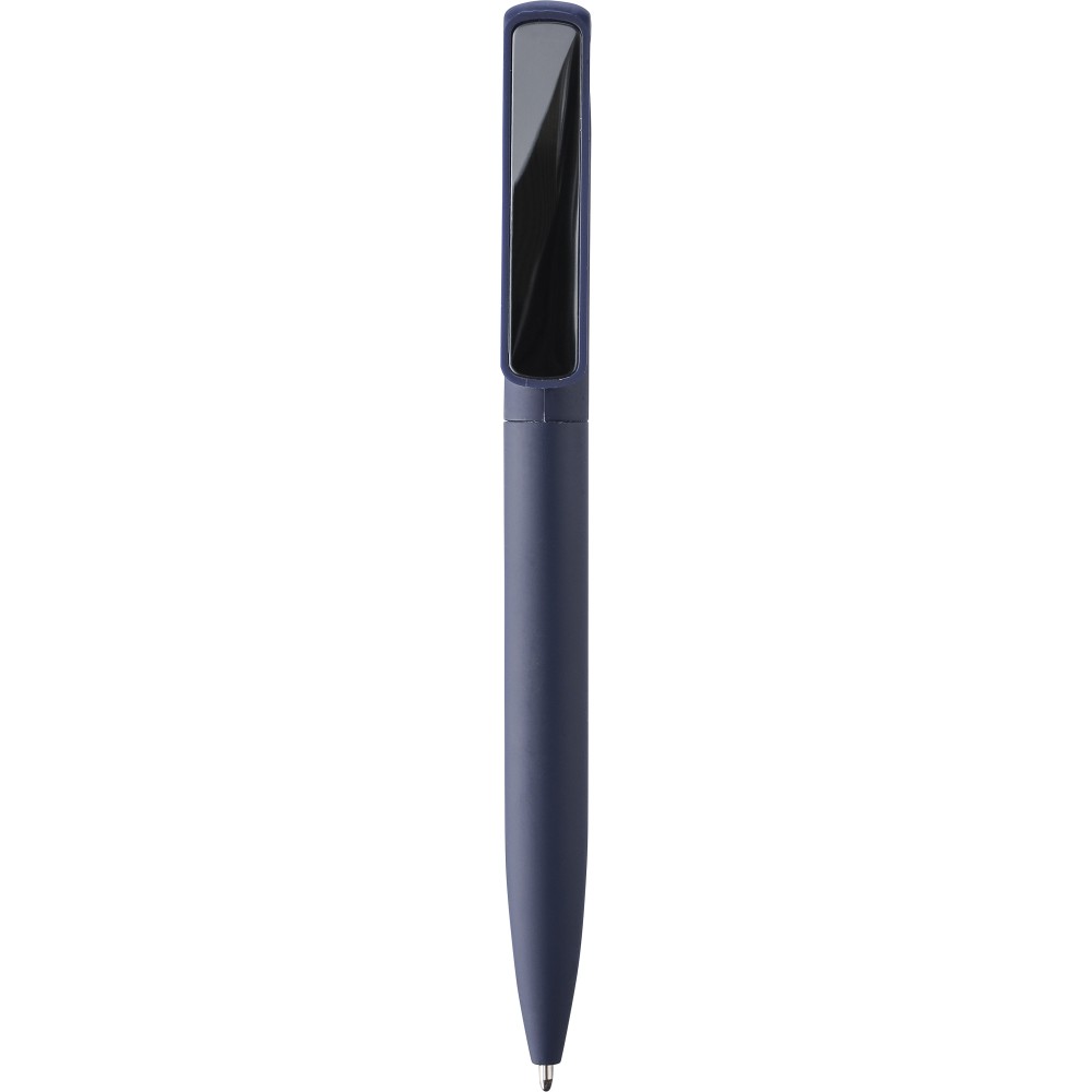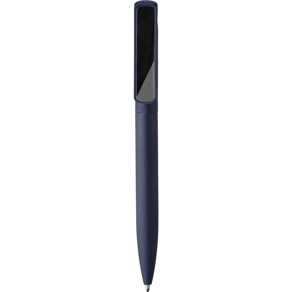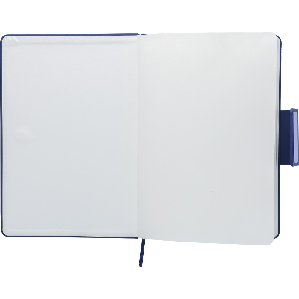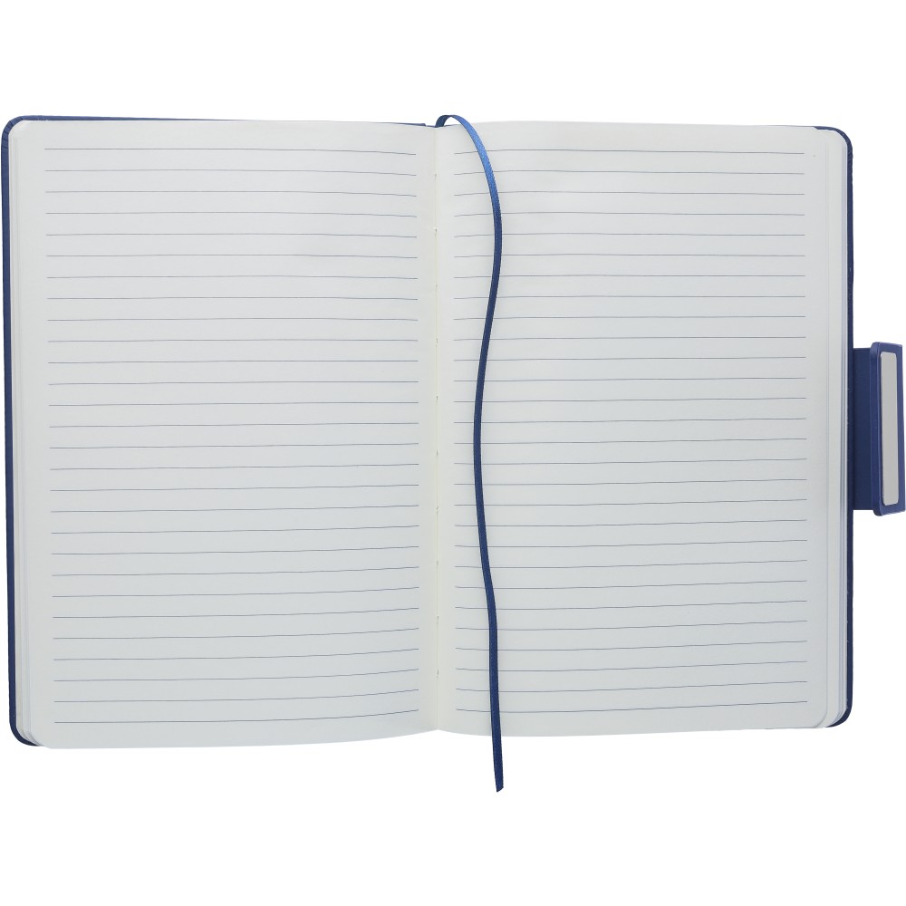 Karton ajándékkészlet. Tartalma: újrahasznosított alumínium csavaros golyóstoll kék tintával és újrahasznosított PU jegyzetfüzet. A jegyzetfüzet 80 lapos 70 g/m2-es vonalas papírral, és szalagos könyvjelzőt és fém mágneses zárat tartalmaz acélszürke gravírozott lappal. Mindkét termék újrahasznosított logóval van ellátva: dombornyomva a jegyzetfüzeten és gravírozva a tollon. Emblémázás: Gravírozás, Szitanyomás