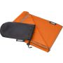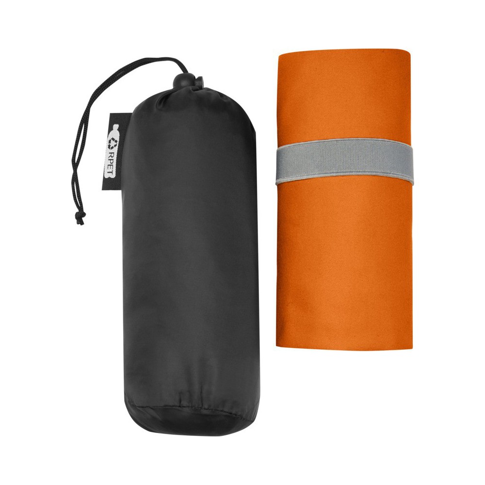Ez a sporttörölköző nagyon jó nedvszívó, könnyű és gyorsan szárad. Ha a törölközőt összehajtjuk és gumiszalaggal rögzítjük, kis mérete miatt alkalmas edzőterembe, uszodába, vagy kempingezésre. A törölköző 130 x 80 cm méretű, 200 gr/m2-es újrahasznosított PET poliamidból készült, mosógépben 40°C-on mosható. Újrahasznosított PET műanyagból készült tároló tasakkal (20 x 8,5 cm) szállítjuk, amely remek helyet biztosít a logó nyomtatásához. Emblémázás: Hímzés, Szitanyomás