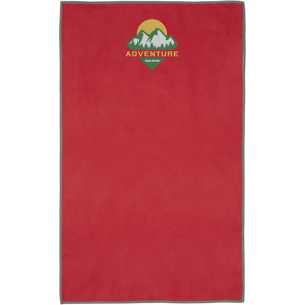 A Pieter sporttörülköző nagyon jó nedvszívó, könnyű, gyorsan szárad, az anyaga pedig tartós és rendkívül puha. Ha a törölközőt összehajtjuk és gumiszalaggal rögzítjük, kis méretűre csomagolható, így alkalmas arra, hogy magunkkal vigyük az edzőterembe, uszodába, vagy ha hátizsákos túrára, esetleg kempingezésre megyünk. A törülköző 30 x 50 cm méretű, 90% GRS újrahasznosított poliészterből és 10% nejlonból készült, és 40 °C-on mosható mosógépben. Újrahasznosított PET műanyagból készült tároló tasakkal (15.5 x 10 cm) szállítjuk. Emblémázás: Hímzés, Szitanyomás