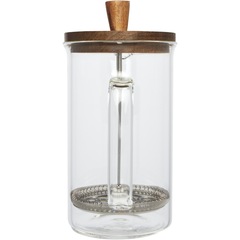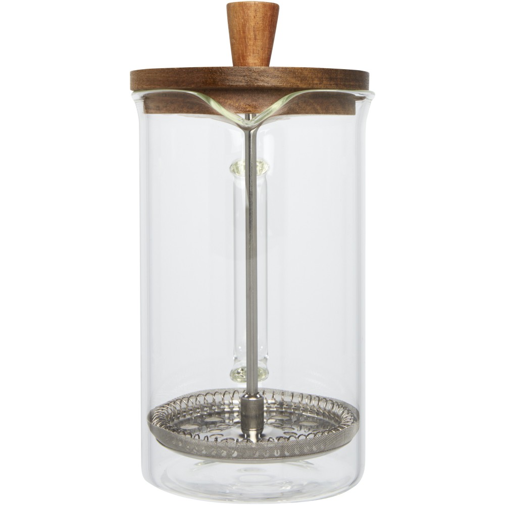 Francia kávékészítő elegáns dizájnnal és akácfából készült tetővel, amely fenntartható, környezetbarát és társadalmilag felelős forrásból származik. Űrtartalma 600 ml. Néhány perc alatt elkészítheti a frissen főzött 3 csésze kávét. Öntsön durva őrölt kávét az üvegkancsóba. Töltse fel forró vízzel, és áztassa. Teát, forrócsokit, tejet, gyümölcsteát és limonádét is készíthet a kancsóban. A boroszilikát üvegnek köszönhetően nemcsak a konyha dísze, hanem elengedhetetlen kirándulásokhoz is. Akácfa, boroszilikát üveg, rozsdamentes acél. Emblémázás: Gravírozás,