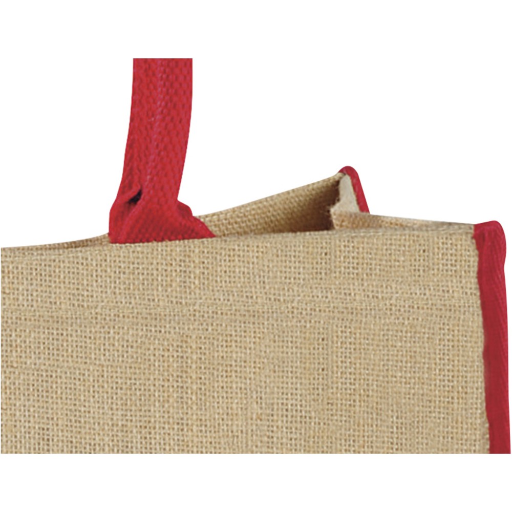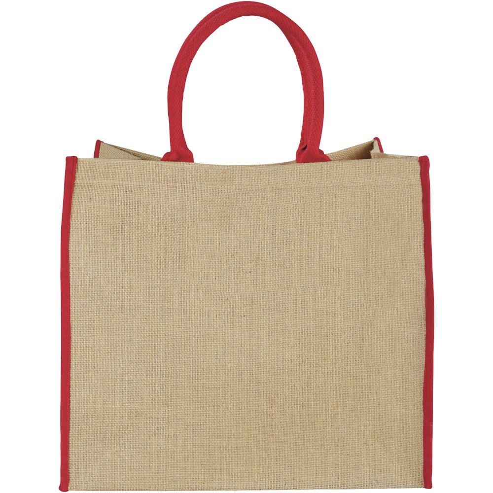 The Large juta bevásárlótáska tépőzáras kialakítással. A lehajtható fülek magassága 17 cm. Megjegyzés: finom grafikát vagy szöveget nem, csak vastag, erős nyomatott lehet az anyagon alkalmazni. Juta. Emblémázás: Szitanyomás