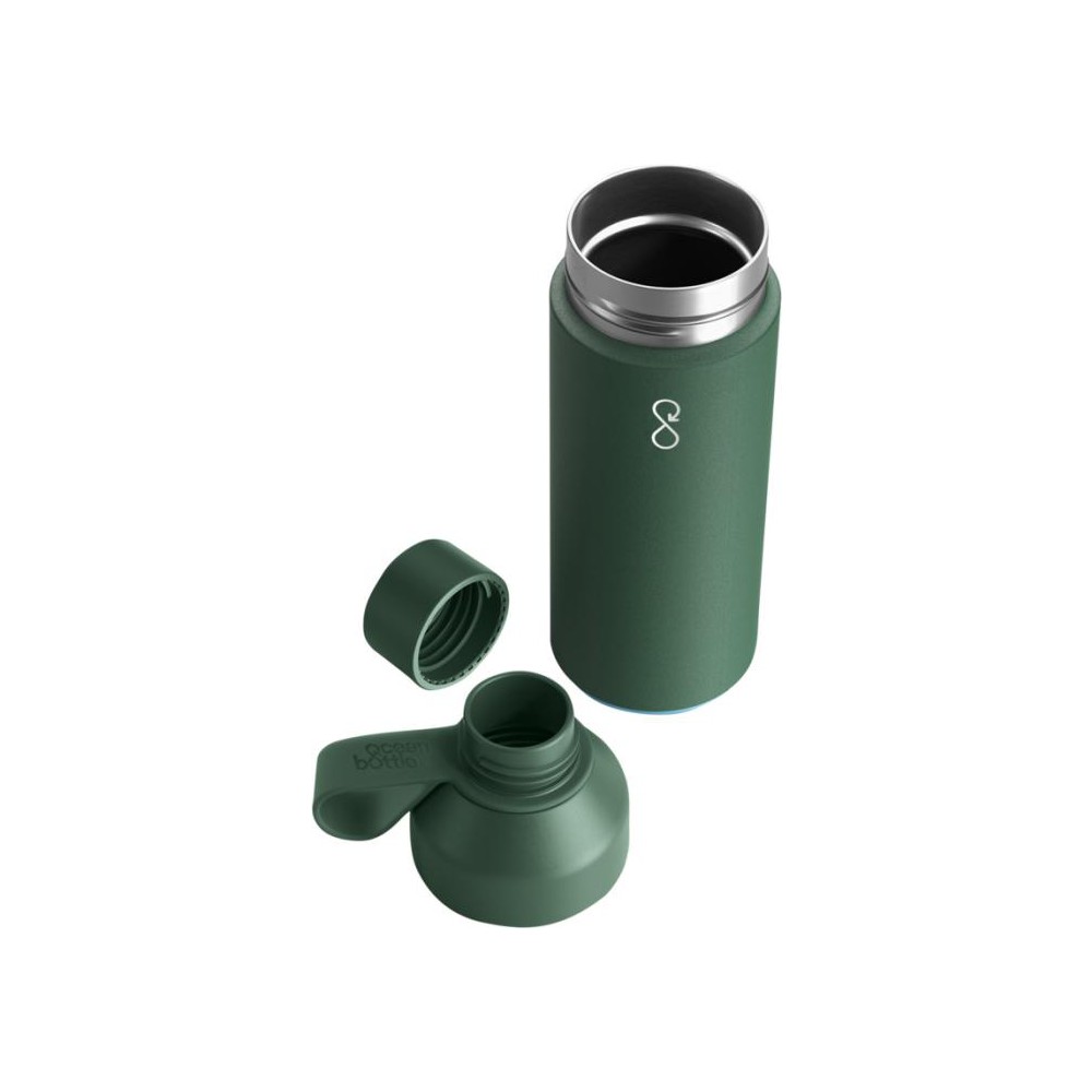 Az 500 ml-es, vákuumszigetelt Ocean Bottle az italokat akár nyolc órán át melegen, és akár tizennyolc órán át hidegen tartja. Minden Ocean Bottle teljesen szénsemleges, és gyártása során 1000 műanyag palack kerül összegyűjtésre, hogy javítsa a tengerparti közösségek megélhetését. A palack újrahasznosított rozsdamentes acélt és újrahasznosított óceánhoz kötődő műanyagot tartalmaz, és az NFC Smart Chip lehetővé teszi, hogy minden újratöltéskor több műanyagot gyűjtsön össze . A kettős nyílás megkönnyíti a palack tisztítását és feltöltését, a szivárgásgátló fedél pedig könnyen szállítható hurokkal rendelkezik. A palack mosogatógépben mosható és BPA-mentes. 70% újrahasznosított rozsdamentes acél és 10% PET műanyag és 10% újrahasznosított PET műanyag és 10% szilikon műanyag. Emblémázás: Gravírozás, Tamponnyomás