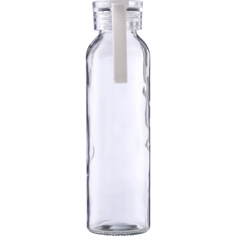 Üveg vizespalack színes kupakkal és pánttal. Csomagolása kraft papírdoboz. Űrtartalom: 500 ml. Emblémázás: Bögredekor
