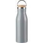Újrahasznosított rozsdamentes acél palack bambusz kupakkal. Belül 304-es, kívül 201-es rozsdamentes acél. A palackon újrahasznosítást jelölő logó található. Űrtartalom: 500 ml. Emblémázás: Bögredekor, Gravírozás