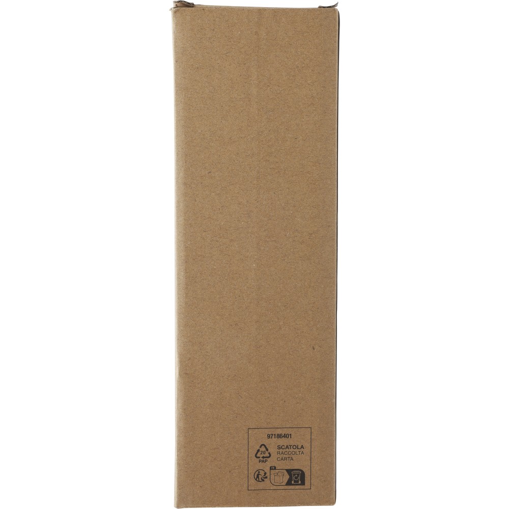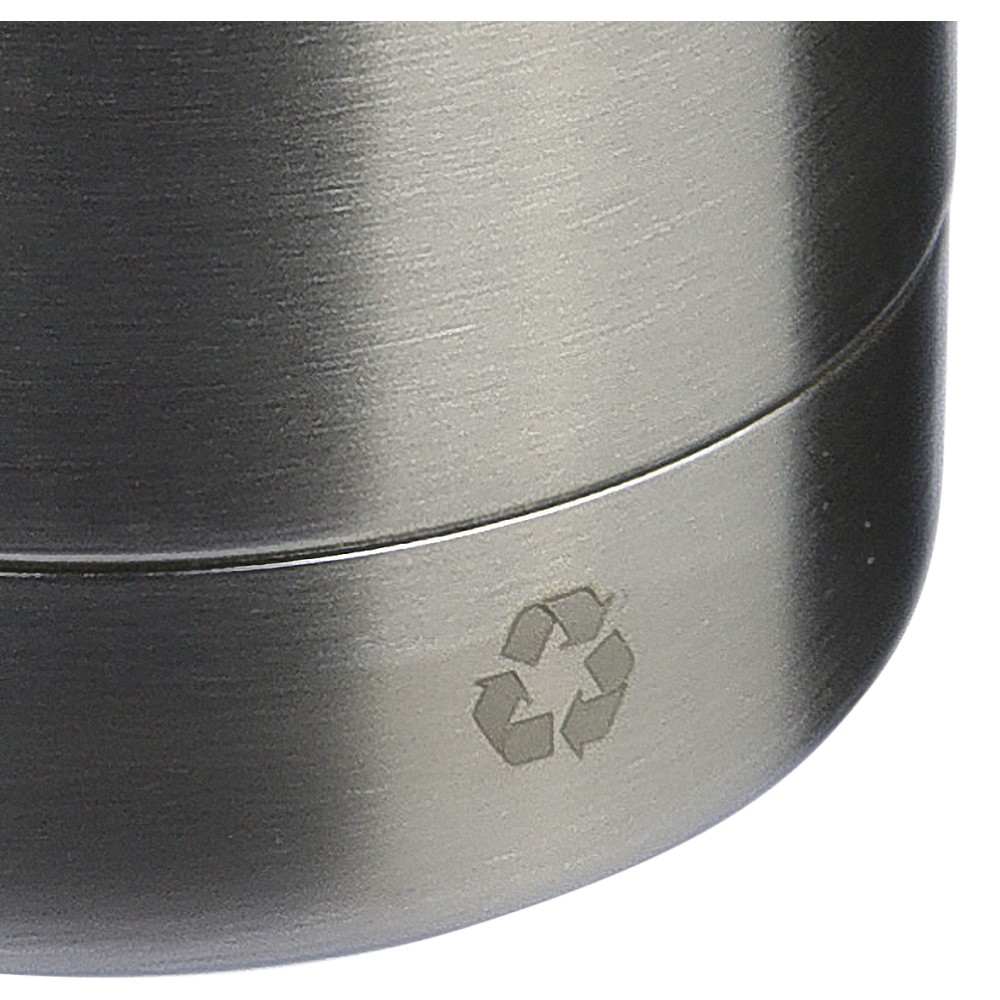 Újrahasznosított rozsdamentes acél (s/s304) duplafalú palack, matt felülettel. Barna kartondobozba egyedileg csomagolva. Űrtartalom: 500 ml. Emblémázás: Bögredekor, Gravírozás, Körszita, Tamponnyomás